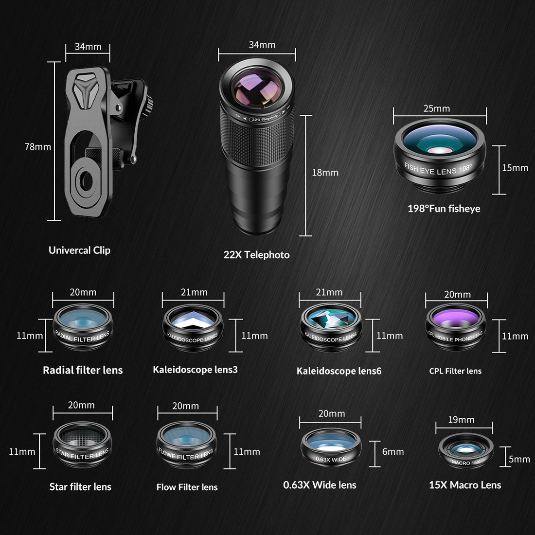 Zamień swój smartfon w mobilne studio – Zestaw obiektywów 10w1 Apexel APL-22XCR50