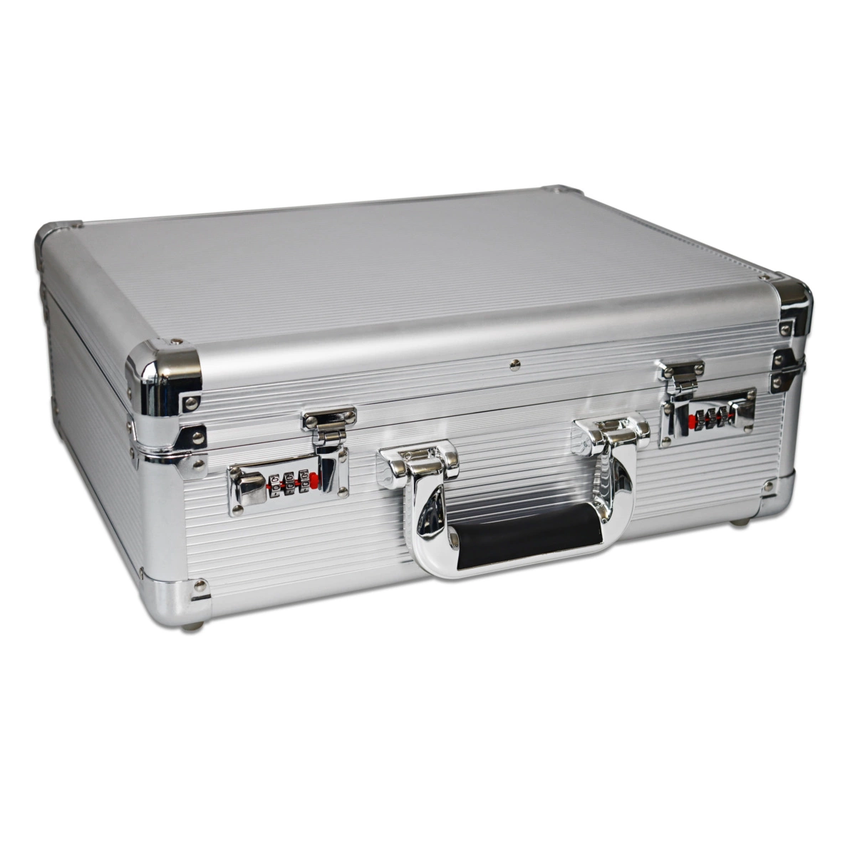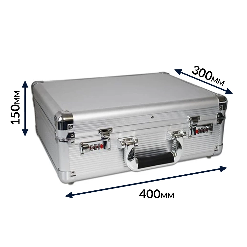 - Materiał: Walizka wykonana z wytrzymałego aluminium, odpornego na uszkodzenia mechaniczne i korozję.