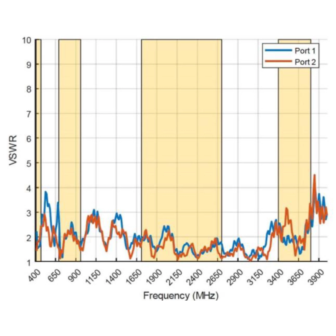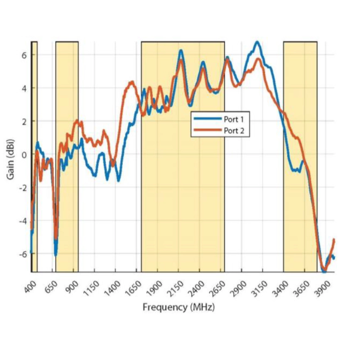 częstotliwości 410–3800 MHz. Dzięki temu antena utrzymuje stabilne łącze w różnych