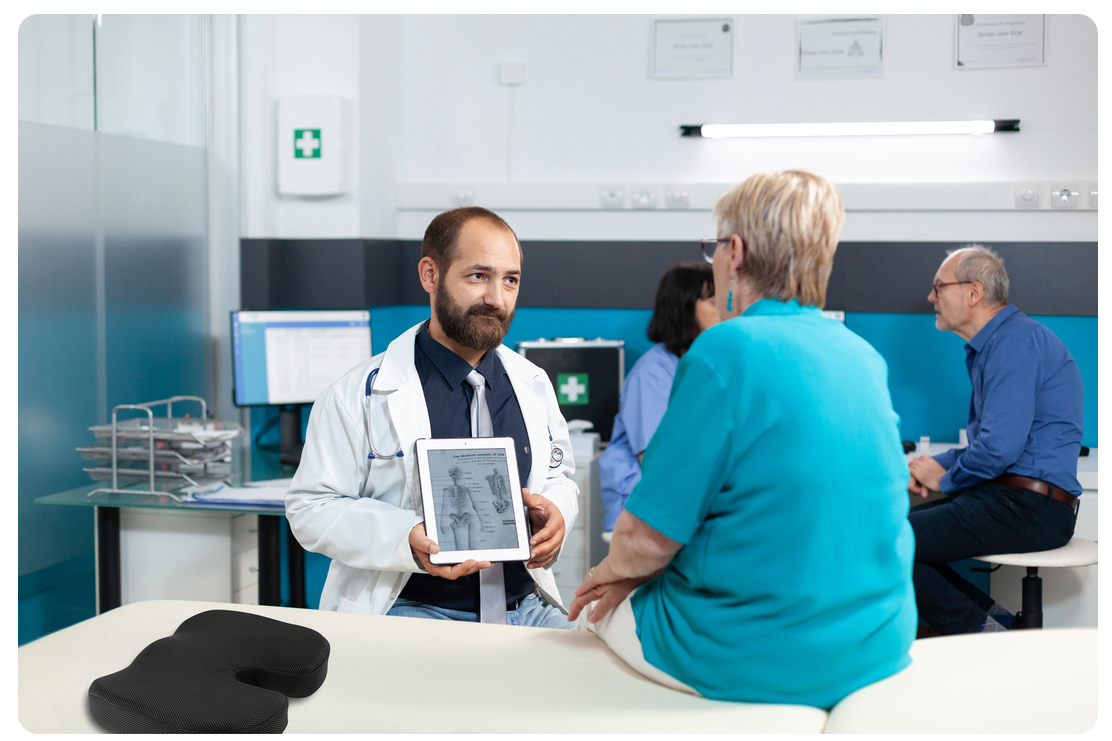 Unikalny, specjalnie zaprojektowany, ergonomiczny kształt poduszek do siedzenia pozwala na zmniejszenie nacisku na kręgosłup. Pozostaje się w podwyższonej pozycji, a to odciąża nasze ciało poprzez zachowanie poprawnej postawy kręgów w odcinku lędźwiowym oraz okolic kości ogonowej. Produkt idealny dla osób pracujących w biurze, często podróżujących, spędzających godziny w aucie i osób na wózku inwalidzkim.