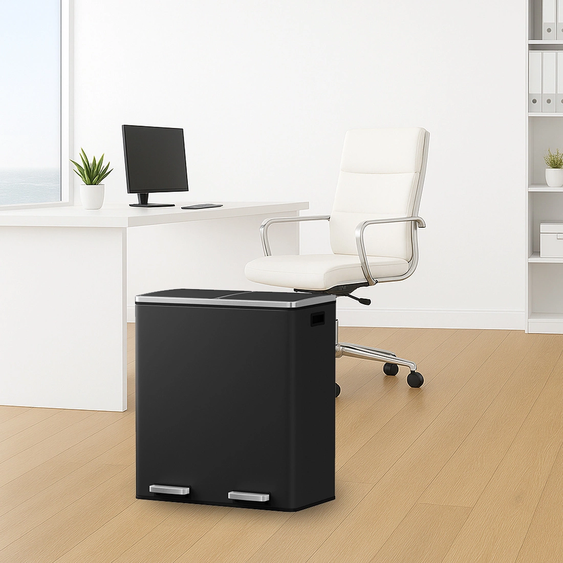 Kosz na śmieci Spacetronik SFFT0021_V1 to nowoczesne i praktyczne rozwiązanie do każdego domu. Dzięki podwójnym komorom umożliwia wygodne sortowanie odpadów – osobno na śmieci i recykling. Pokrywy typu soft-close zamykają się delikatnie i bez hałasu, eliminując trzaskanie i zwiększając komfort użytkowania. Wykonany z wysokiej jakości stali nierdzewnej, zapewnia trwałość i elegancki wygląd pasujący do każdej kuchni.