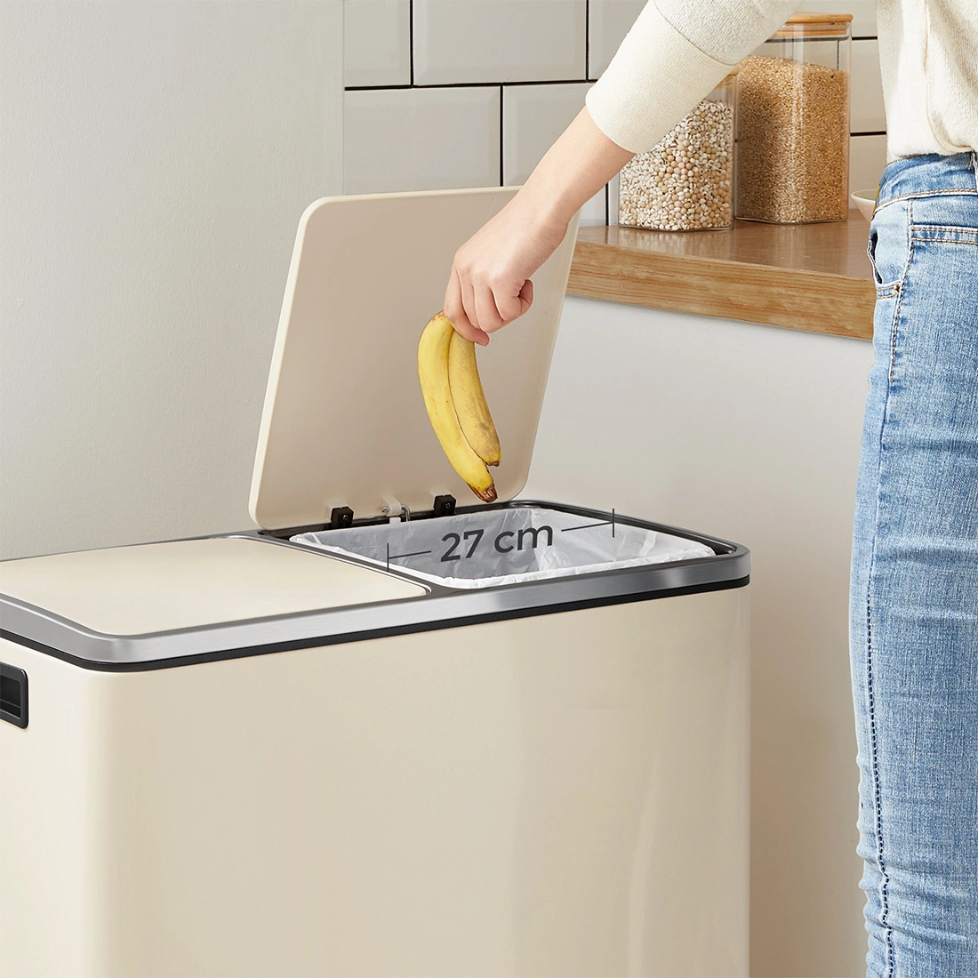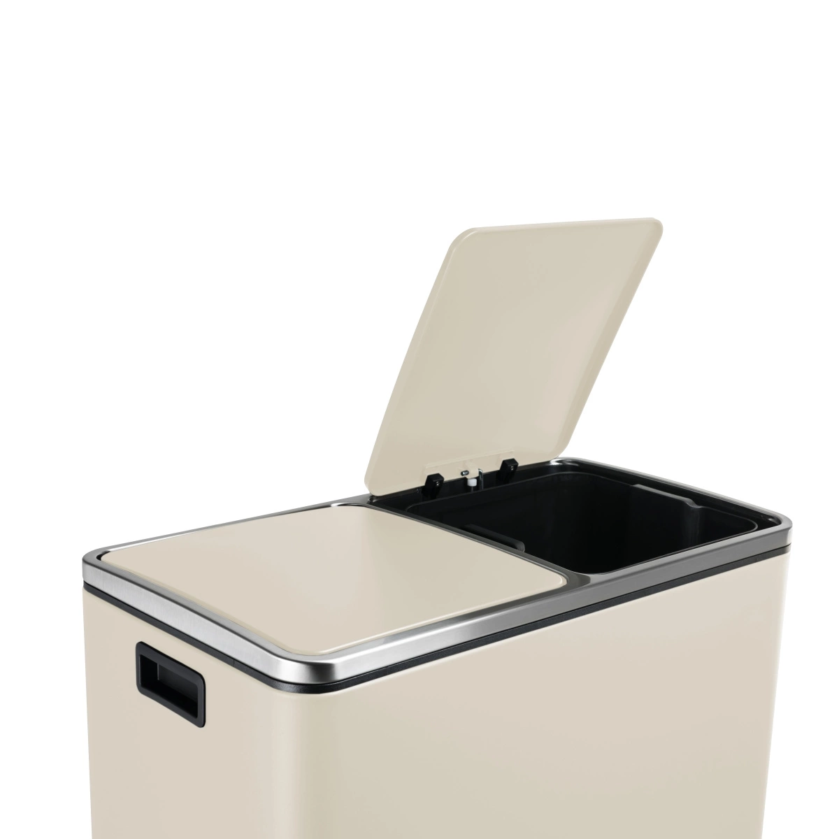 Model Spacetronik SFFT0021_V3 posiada dwie osobne komory, które ułatwiają codzienną segregację śmieci. Dzięki temu użytkownik może wygodnie oddzielać odpady zmieszane od recyklingu, co znacząco poprawia organizację i przyczynia się do dbania o środowisko. Podwójna komora pozwala też oszczędzać czas i miejsce w kuchni.