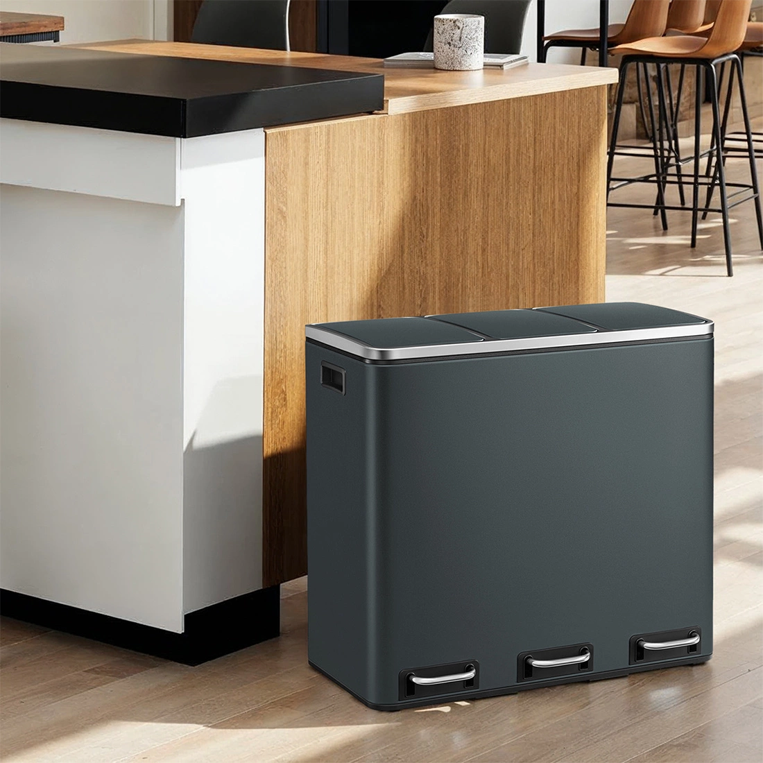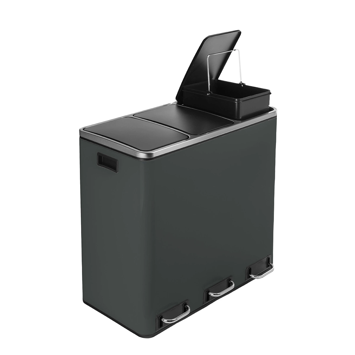 Kosz na śmieci z potrójną komorą Spacetronik SFFT0031_V4 z funkcją cichego domykania ciemno szary