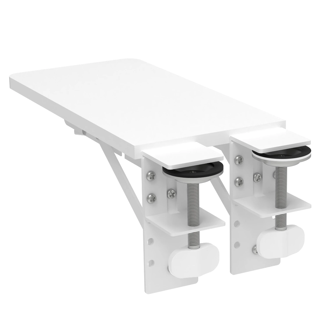 Zacisk śrubowy z miękkimi podkładkami chroni powierzchnię biurka przed zarysowaniem. Instalacja i demontaż trwają chwilę i nie pozostawiają śladów.