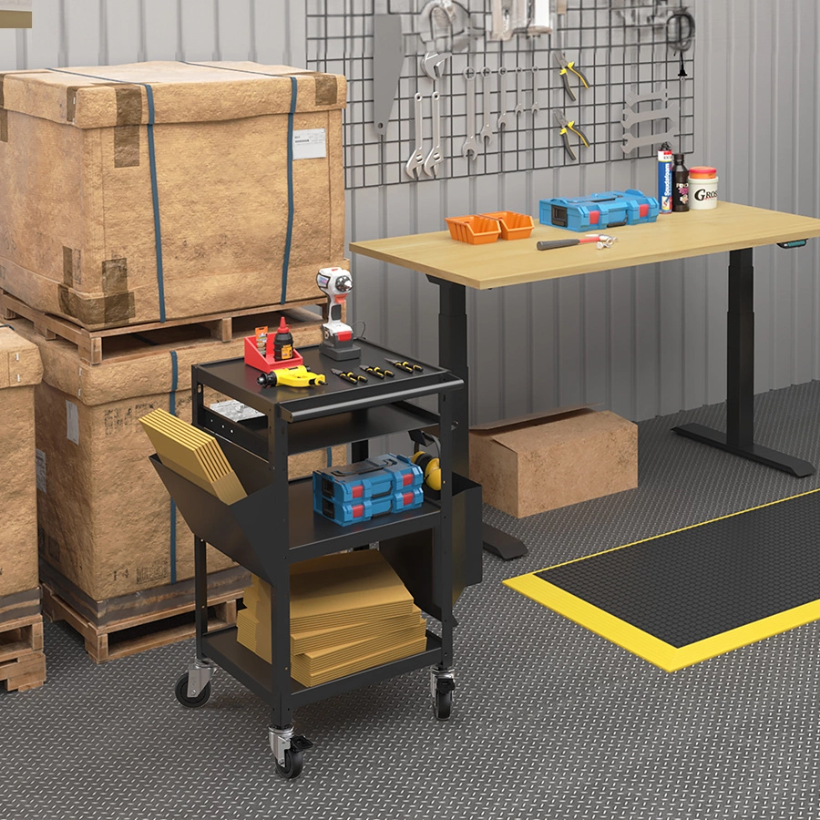 Wózek składa się z trzech solidnych, równomiernie rozmieszczonych półek. Każda z półek ma odpowiednią wytrzymałość, aby przenosić narzędzia, dokumenty, urządzenia lub inne przedmioty, w zależności od miejsca użycia. Dzięki temu stolik może służyć np. w magazynie. Sprawdzi się idealnie do przewożenia pudeł, narzędzi i mniejszych elementów. W biurze będzie idealny do transportu dokumentów, sprzętu biurowego, a nawet urządzeń elektronicznych. W warsztacie można na nim przechowywać narzędzia, części lub inne materiały potrzebne do pracy. Stolik posiada nośność całkowitą aż 30kg.