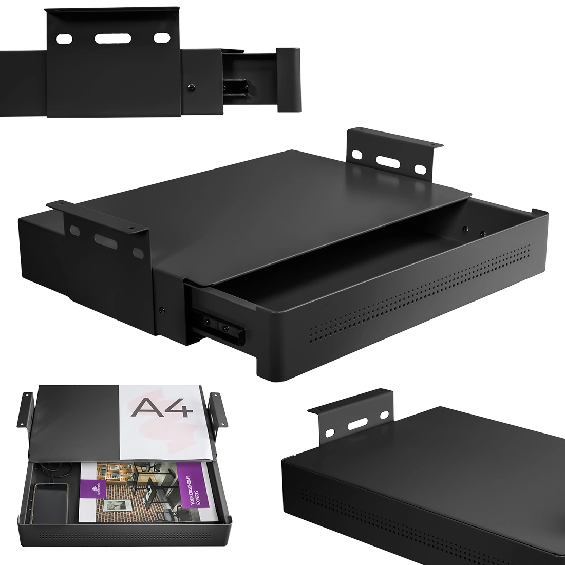 Wykonana ze stali z matowym wykończeniem. Maksymalny udźwig 8 kg sprawia, że półka jest idealna do przechowywania laptopów, akcesoriów biurowych czy innych przedmiotów, które chcesz mieć zawsze pod ręką. Ta szuflada nie tylko świetnie się sprawdza, ale też wygląda nowocześnie i pasuje do każdego wnętrza – od domowego biura po przestrzeń coworkingową.