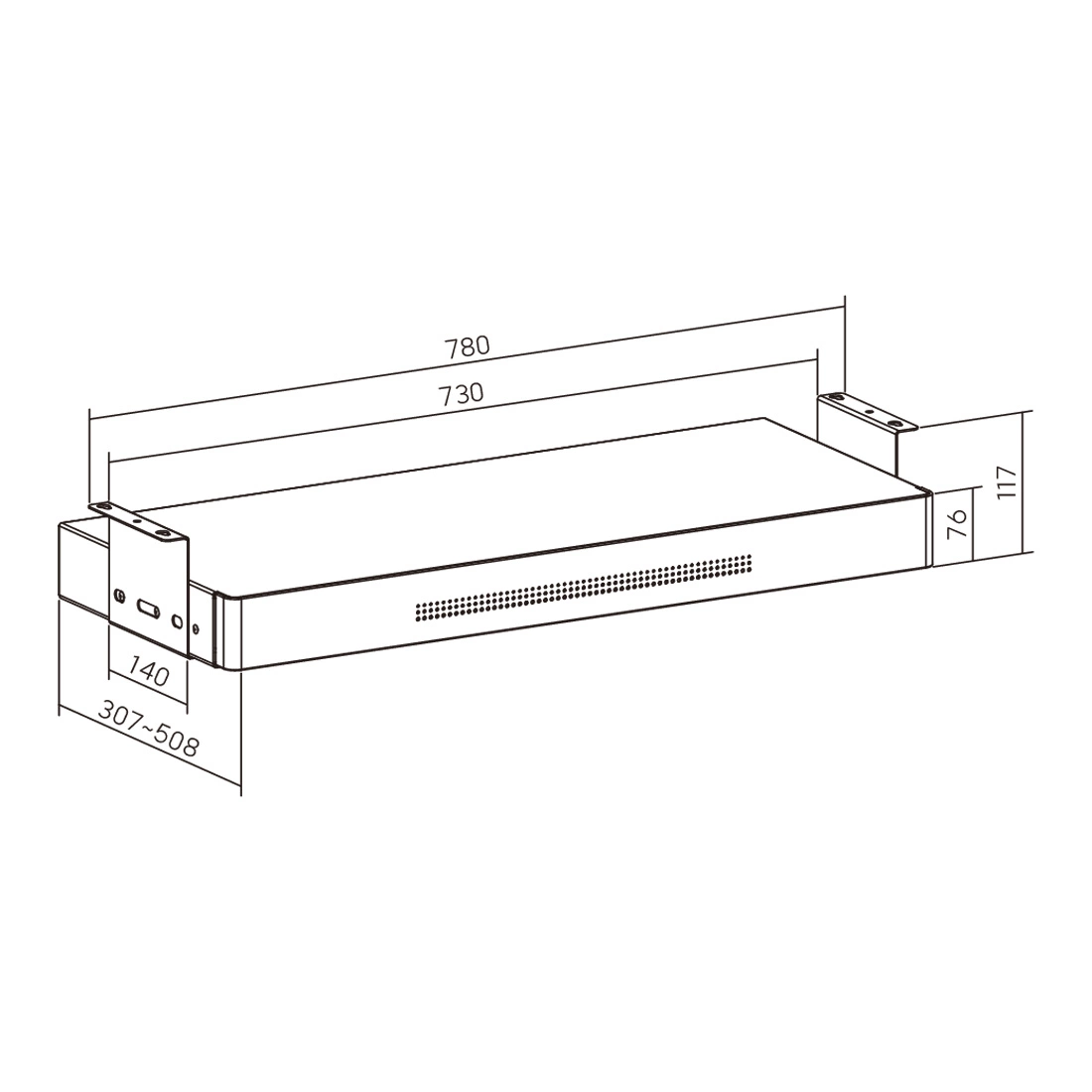 - Wymiary całkowite: 780 × 307~508 × 117 mm (30.7" × 12.1"~20" × 4.6")
