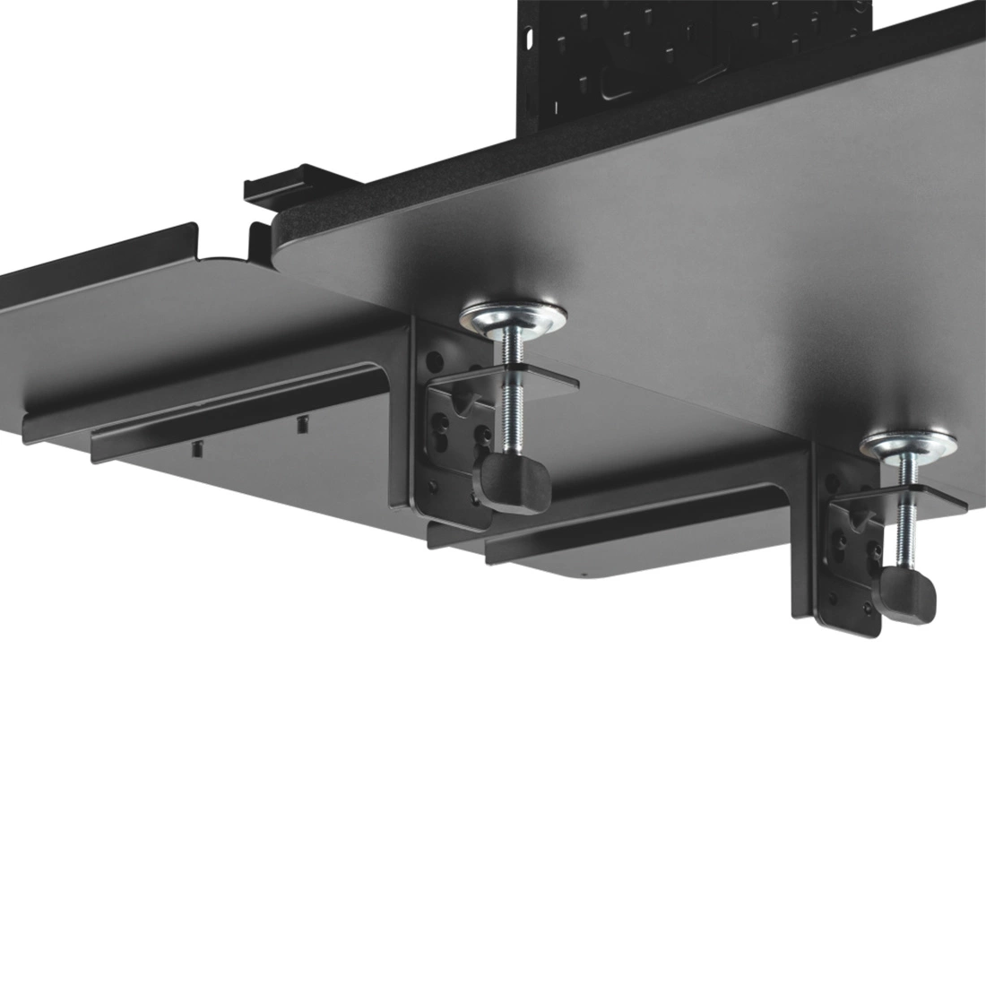 Funkcjonalna półka do biurek montowana na zaciski Spacetronik Holdee SPB155B z tablicami perforowanymi i dużą nośnością do 20kg