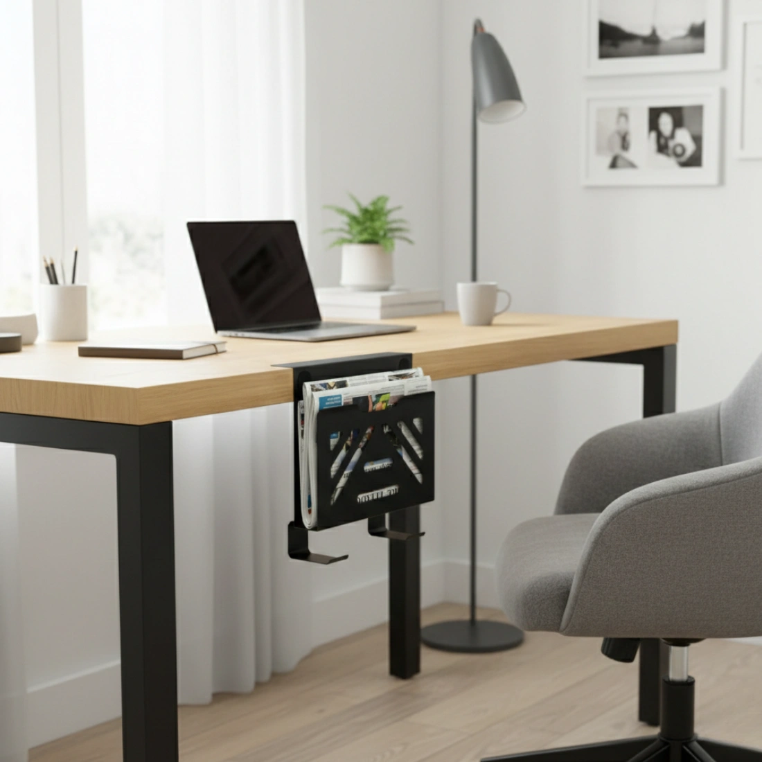 Zaciskowa konstrukcja sprawia, że organizer zamontujesz bez ingerencji w mebel. To wygodne rozwiązanie, jeśli chcesz uniknąć otworów w blacie, a jednocześnie zależy Ci na możliwości łatwego przeniesienia organizera na inne biurko.