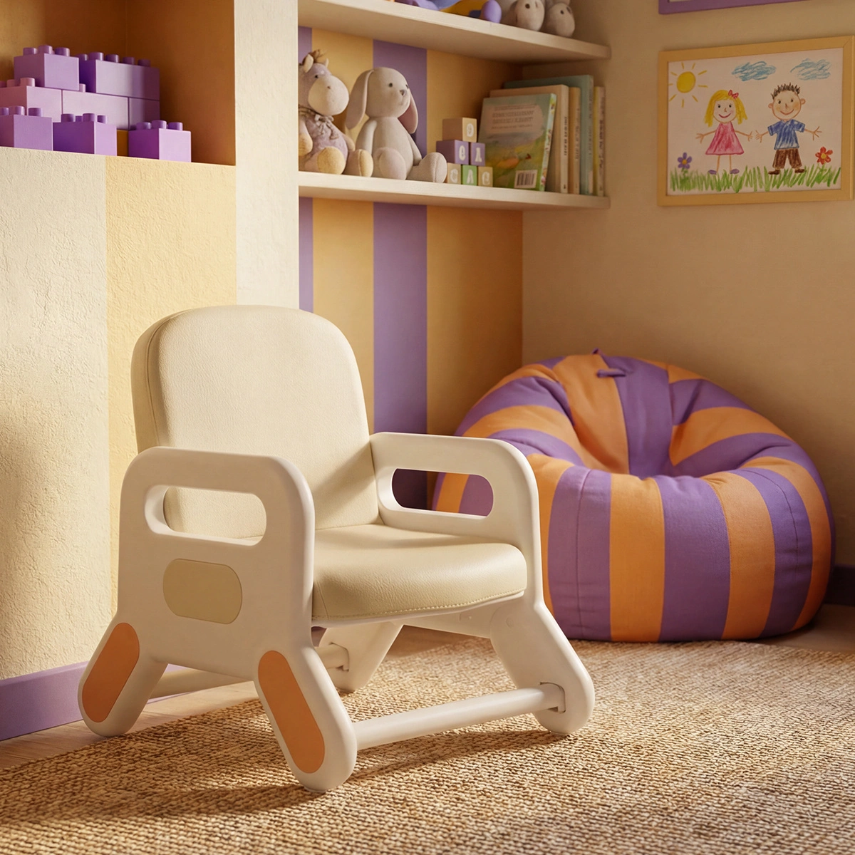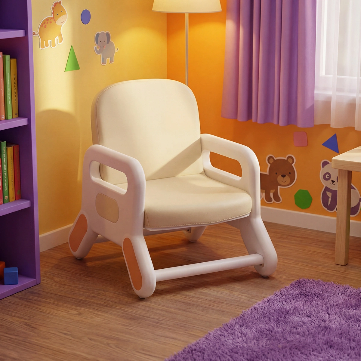 Wymiary fotela zostały dobrane w taki sposób, żeby dopasować się zarówno do chłopców, jak i dziewczynek. Szerokość 38,5 cm, wysokość 49 cm, czy też siedzisko o wymiarach 26x30 cm. Dzięki takim wymiarom z krzesełka korzystać mogą również dzieci w różnym wieku. Natomiast uniwersalny kremowy kolor pozwoli z łatwością dopasować fotelik do każdego pokoju.