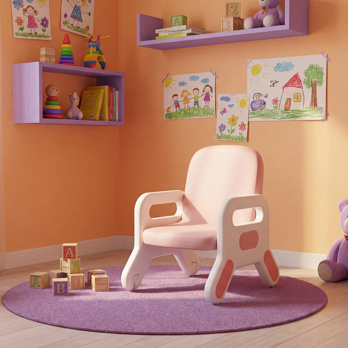 Wymiary fotela zostały dobrane w taki sposób, żeby dopasować się zarówno do chłopców, jak i dziewczynek. Szerokość 38,5 cm, wysokość 49-53,5 cm, czy też siedzisko o wymiarach 26x30 cm. Dzięki takim wymiarom z krzesełka korzystać mogą również dzieci w różnym wieku. Natomiast uniwersalny szary różowy pozwoli z łatwością dopasować fotelik do każdego pokoju.
