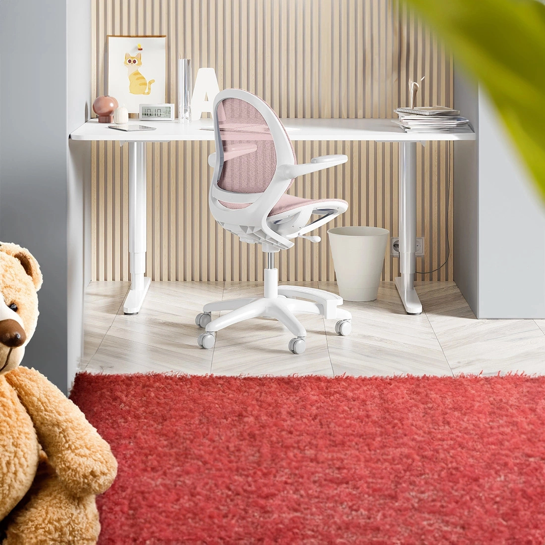 Podłokietniki zostały zaprojektowane z myślą o maksymalnym komforcie i wsparciu dla dziecka. Ergonomiczny kształt pozwala na utrzymanie prawidłowej pozycji rąk, co wspiera zdrową postawę i redukuje napięcie mięśniowe w ramionach i barkach. Dzięki możliwości podniesienia podłokietników, w zależności od preferencji dziecka można z nich korzystać lub nie, zapewniając mu jeszcze większy komfort podczas nauki, zabawy czy odpoczynku.
