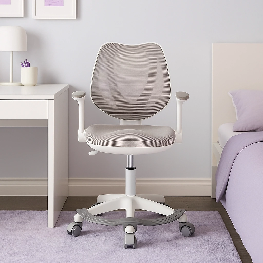 Model SPC-XD08S to wygodne, ergonomiczne krzesło obrotowe dla dziecka, które ułatwia naukę i codzienne obowiązki. Siedzisko obraca się lekko i płynnie, dzięki czemu maluch może swobodnie sięgnąć po książki, przybory lub tablet bez wstawania. To nie tylko wygoda, ale też sposób na wspieranie rozwoju motorycznego i samodzielności najmłodszych. Idealne jako krzesło do biurka ucznia w pokoju dziecięcym.