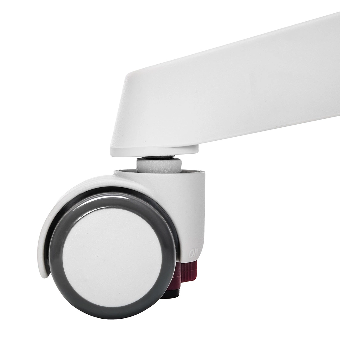 Krzesło wyposażono w stabilną podstawę oraz kółka grawitacyjne, które automatycznie blokują się podczas użytkowania, zapobiegając niekontrolowanemu przesuwaniu się.