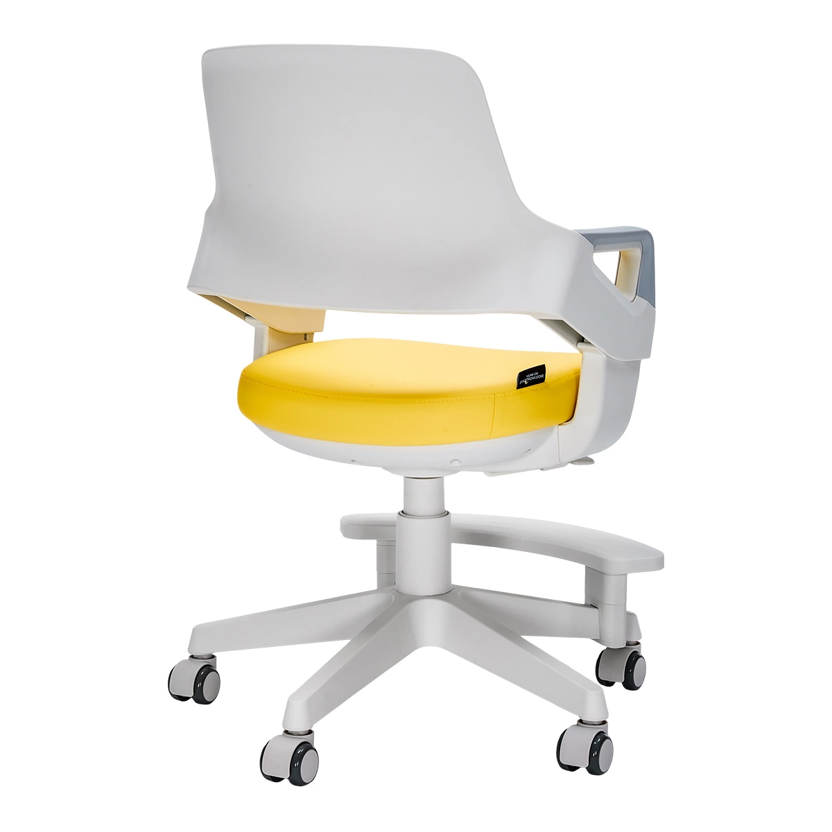Połączenie żółtej tapicerki z szarą podstawą i ramą sprawia, że krzesło świetnie wpisuje się w wystrój pokoju dziecka. Jest uniwersalne – pasuje zarówno dla chłopca, jak i dziewczynki.