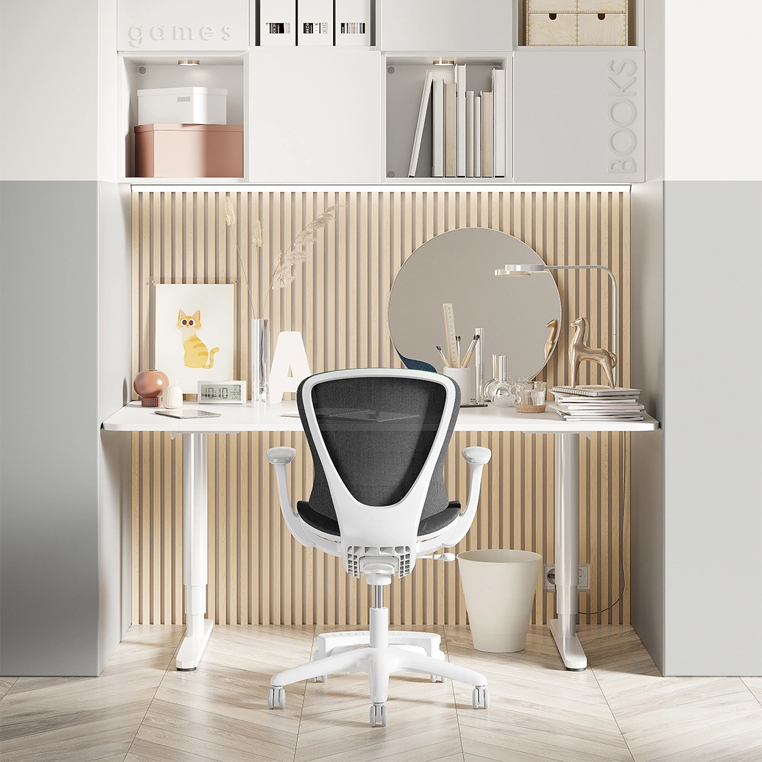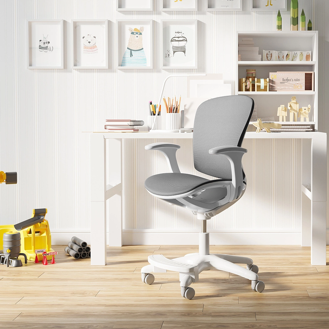 Podłokietniki zostały zaprojektowane z myślą o maksymalnym komforcie i wsparciu dla dziecka. Ergonomiczny kształt pozwala na utrzymanie prawidłowej pozycji rąk, co wspiera zdrową postawę i redukuje napięcie mięśniowe w ramionach i barkach.