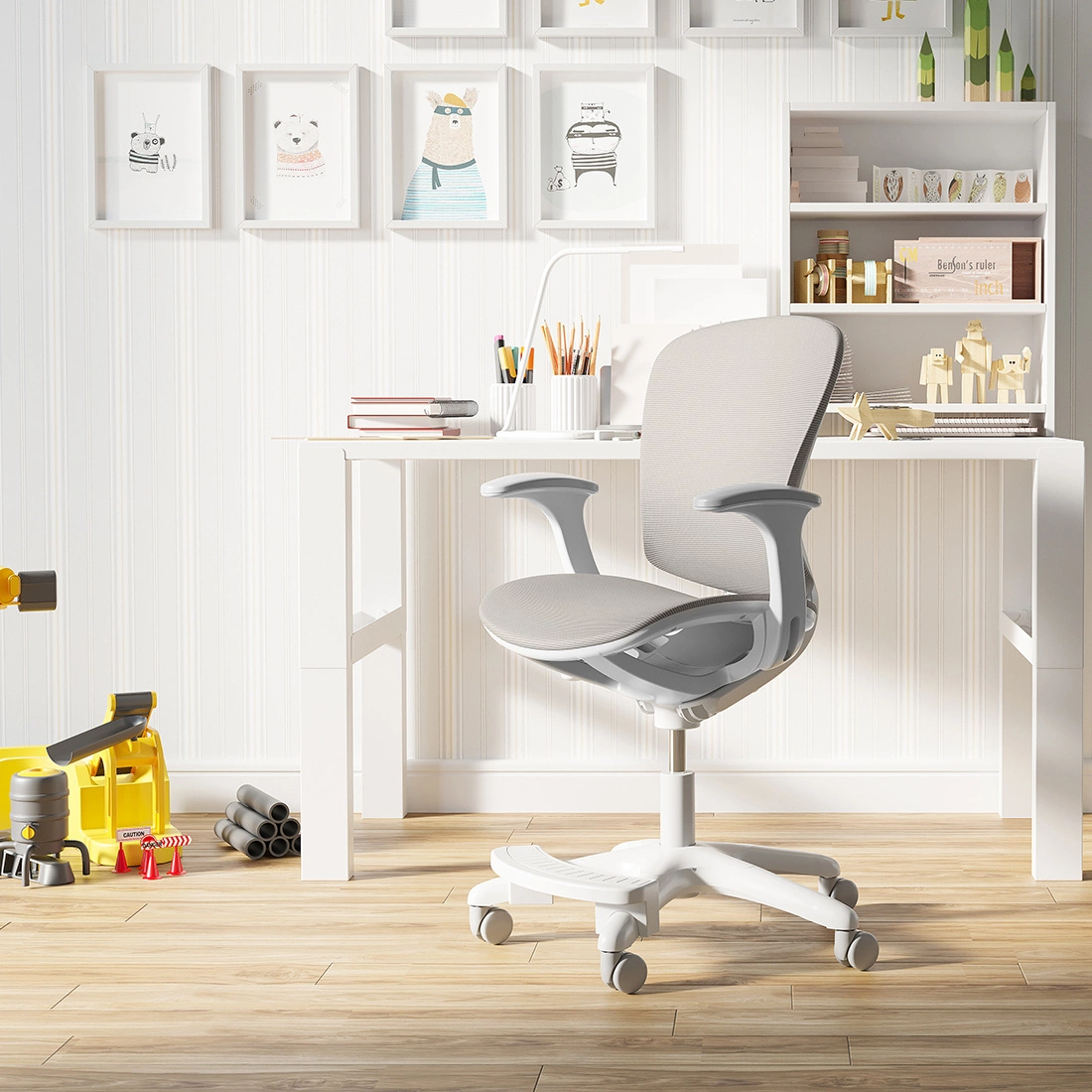 Podłokietniki zostały zaprojektowane z myślą o maksymalnym komforcie i wsparciu dla dziecka. Ergonomiczny kształt pozwala na utrzymanie prawidłowej pozycji rąk, co wspiera zdrową postawę i redukuje napięcie mięśniowe w ramionach i barkach.