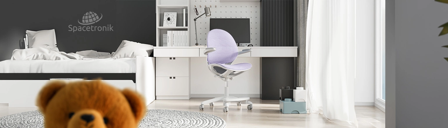 Nieodpowiednia pozycja siedząca przy biurku może przynieść szereg negatywnych konsekwencji. Bóle głowy, pleców i inne schorzenia potrafią nieźle dać się we znaki. Rozwiązania, w które zostało wyposażone krzesło dla dziecka Spacetronik XD, gwarantują nie tylko komfort, ale również skutecznie chronią kręgosłup Twojej pociechy i dbają o odpowiednią pozycję przy biurku.