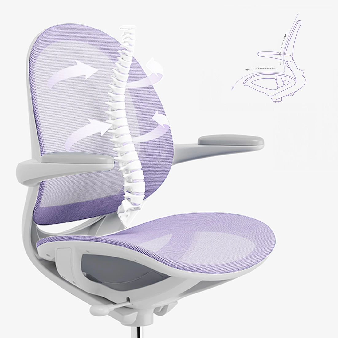 Podłokietniki zostały zaprojektowane z myślą o maksymalnym komforcie i wsparciu dla dziecka. Ergonomiczny kształt pozwala na utrzymanie prawidłowej pozycji rąk, co wspiera zdrową postawę i redukuje napięcie mięśniowe w ramionach i barkach. Dzięki możliwości podniesienia podłokietników, w zależności od preferencji dziecka można z nich korzystać lub nie, zapewniając mu jeszcze większy komfort podczas nauki, zabawy czy odpoczynku.