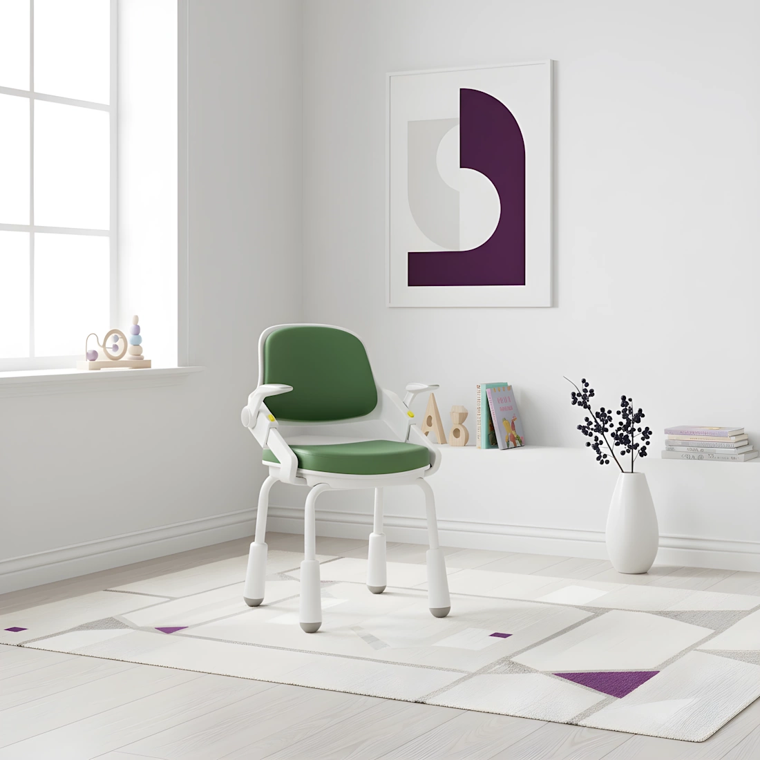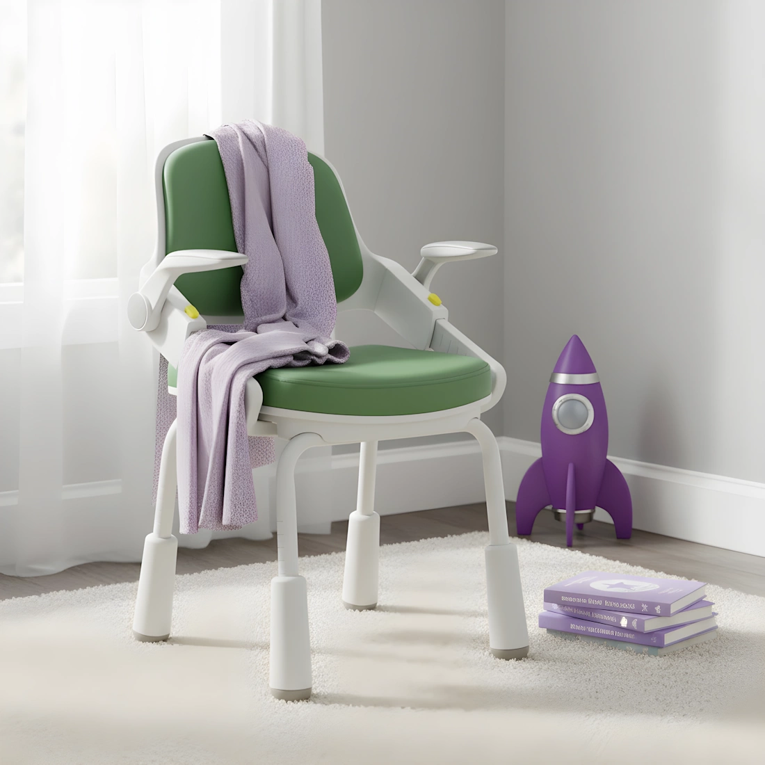 Wszystkie elementy wykonano z trwałych i bezpiecznych materiałów - od oparcia, przez solidną podstawę i ramę z wysokiej jakości tworzywa sztucznego. Zaokrąglone krawędzie, solidne nóżki i wygodne podłokietniki chronią Twoje dziecko podczas codziennego użytkowania.