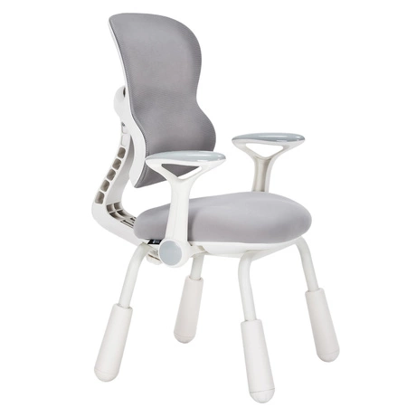 Wyprofilowane oparcie krzesła zostało zaprojektowane tak, aby naśladować naturalną krzywiznę kręgosłupa, zapewniając odpowiednie wsparcie dla pleców i pomagając w kształtowaniu zdrowych nawyków od najmłodszych lat. Przewiewna, a jednocześnie wytrzymała siatka na oparciu to gwarancja komfortu termicznego, nawet podczas letnich upałów. Siedzisko wypełnione gęstą pianką i obite przyjemną w dotyku tkanią zapewnia wygodę, która pozwala dziecku skupić się na zadaniach, a nie na wierceniu się w poszukiwaniu wygodnej pozycji. Zobacz na zdjęciach w galerii, jak precyzyjnie wyprofilowane jest oparcie, by wspierać młodego użytkownika.