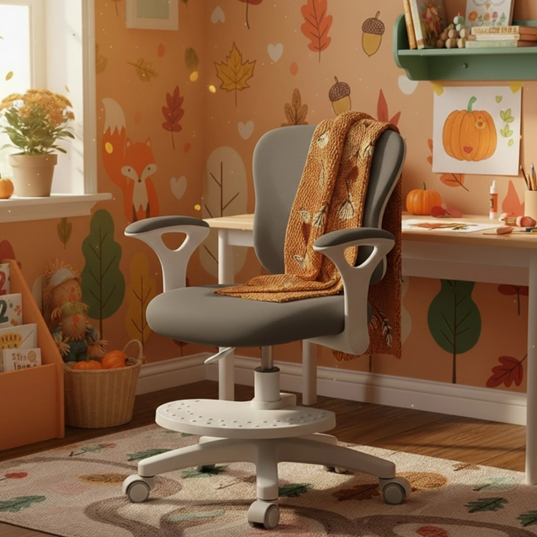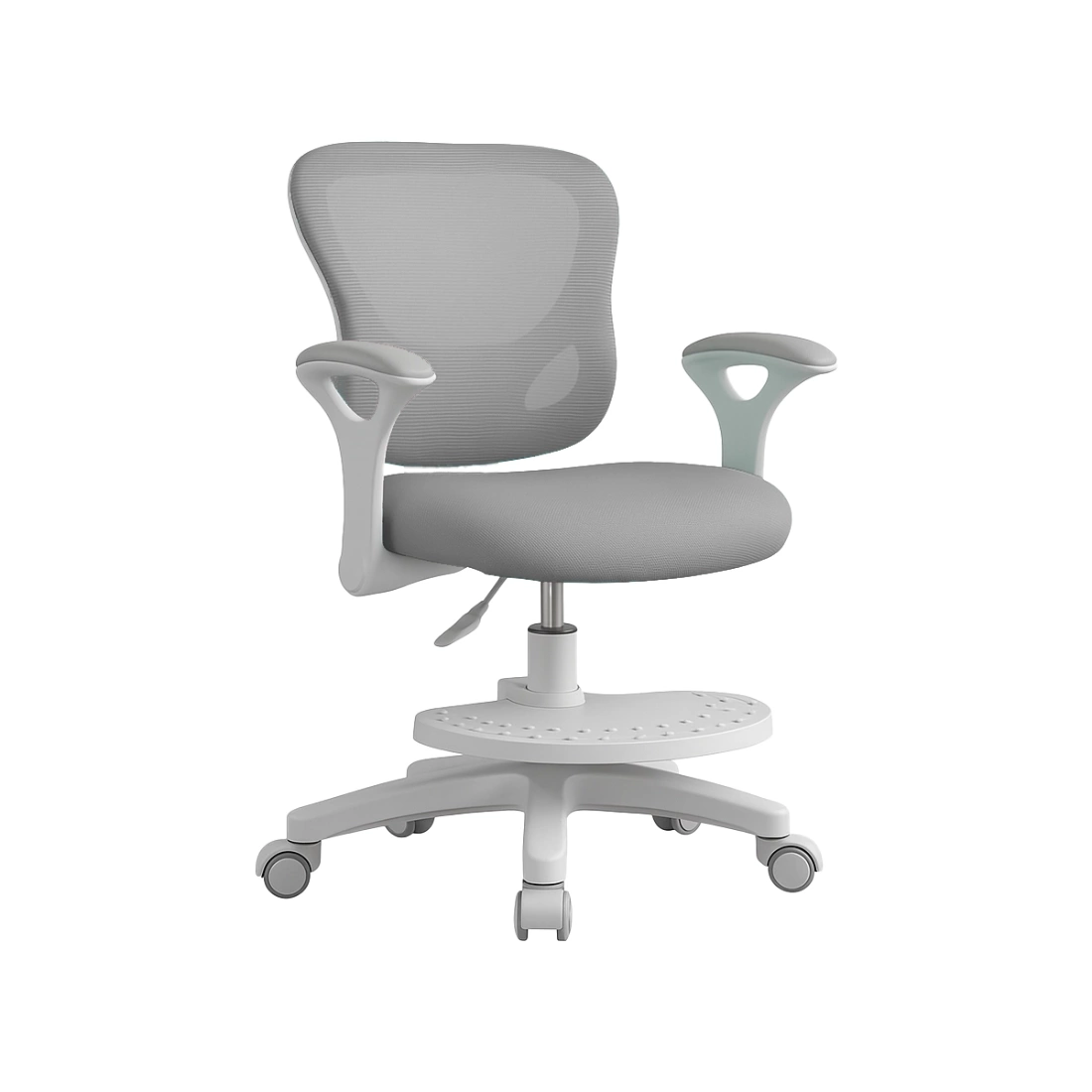 Spacetronik SPC-XD-17 dopasowuje się do wzrostu dziecka (ok. 110–160 cm). Regulowana wysokość siedziska 42–53 cm i przesuw siedziska przód–tył ułatwiają ustawienie prawidłowego kąta w kolanach, a ergonomiczne wsparcie lędźwi dba o kręgosłup. Siatkowe oparcie zapewnia przewiewność, a antypoślizgowy podnóżek 17–29 cm stabilizuje ułożenie stóp. Kółka grawitacyjne blokują się podczas siedzenia, zwiększając skupienie.