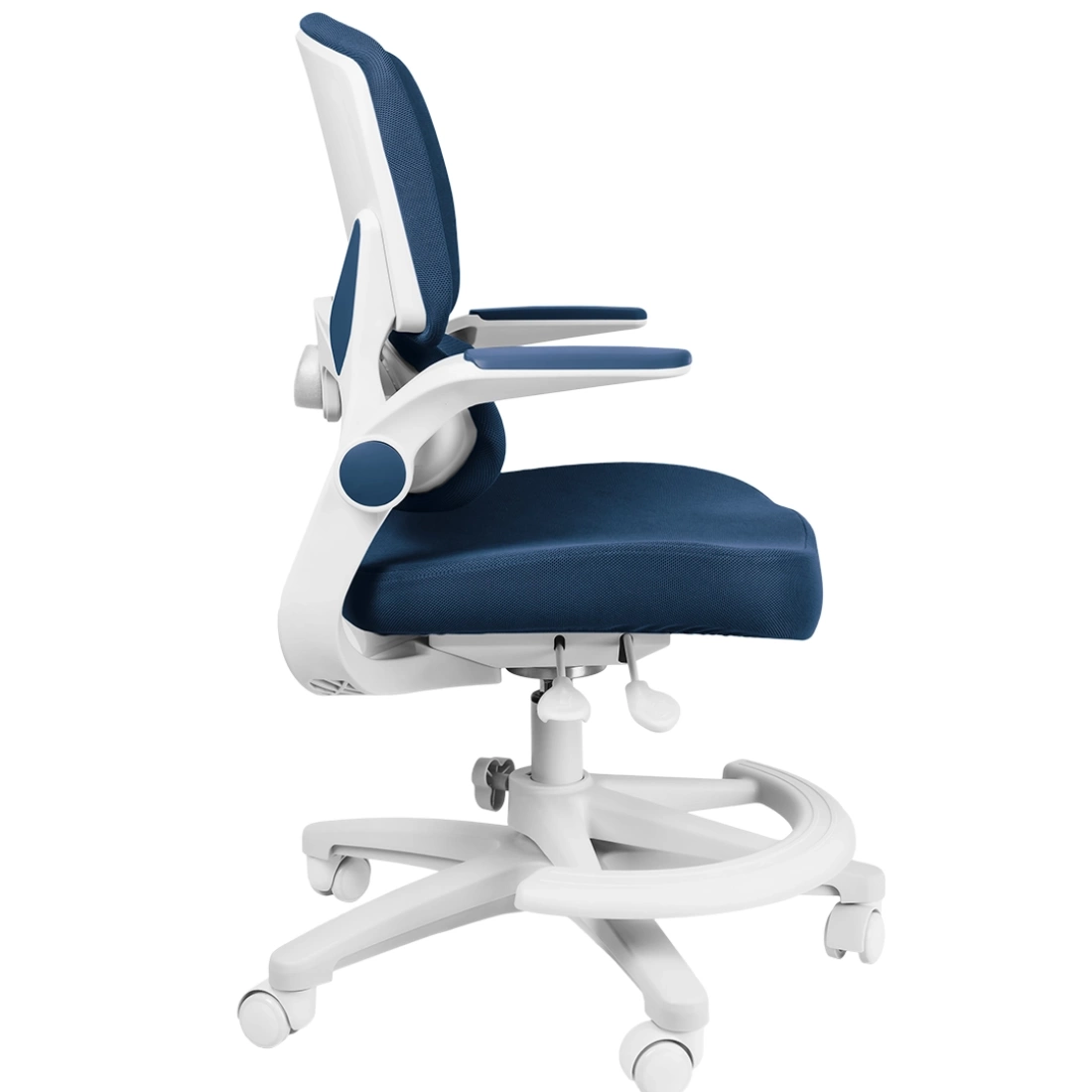 Kompletny zestaw do nauki i zabawy dla Twojego dziecka! W pakiecie otrzymujesz biurko z elektryczna regulacja wysokosci SPE-X116A (55–89 cm, blat 112 × 60 cm) z dodatkowa pólka i uchwytem na tablet/ksiazke oraz ergonomiczne krzeslo SPC-XD-07 z potrójnym oparciem (górne segmenty + poduszka ledzwiowa), plynna regulacja wysokosci (wys. calkowita 91–102 cm, wys. siedziska 45–56 cm), regulacja glebokosci siedziska 8 cm, regulowanym podnózkiem i kolkami grawitacyjnymi oraz mozliwoscia blokady obrotu. Komplet rosnie wraz z dzieckiem (biurko ok. 120–160 cm, krzeslo ok. 110–180 cm), wspiera prawidlowa postawe, porzadek i koncentracje. Neutralne bialo-niebieskie biurko i krzeslo w tej samej kolorystyce pasuja do wiekszosci aranzacji pokoju dzieciecego.