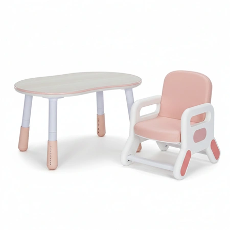 Najważniejszą zaletą jest regulacja wysokości w zakresie 28–54 cm. Dzięki temu stolik łatwo dopasujesz do wieku i wzrostu dziecka, a także do różnych krzesełek. W praktyce oznacza to wygodniejszą pozycję przy blacie i większy komfort podczas dłuższych zajęć — bez konieczności wymiany mebla, gdy dziecko rośnie.