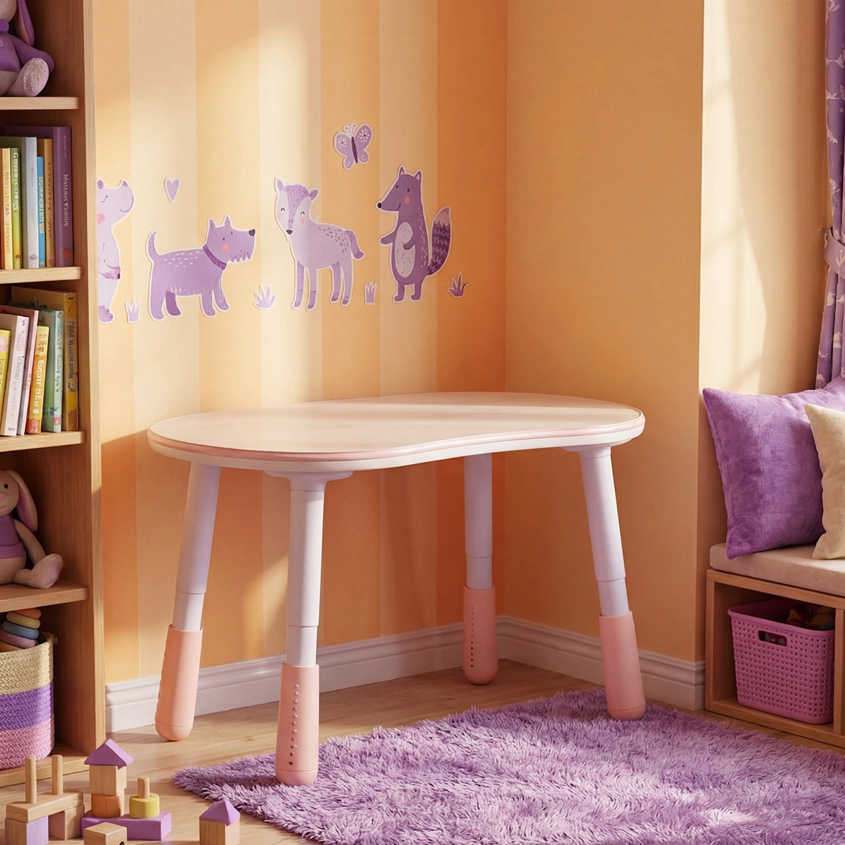 Dziecięce meble powinny wspierać nie tylko wygodę, ale też bezpieczeństwo. Stolik został zaprojektowany z myślą o najmłodszych: zaokrąglone rogi zmniejszają ryzyko urazu podczas zabawy, a stabilna konstrukcja dobrze radzi sobie w dynamicznym, dziecięcym otoczeniu. To szczególnie ważne, gdy dziecko często zmienia aktywności i przemieszcza się w swoim pokoju.