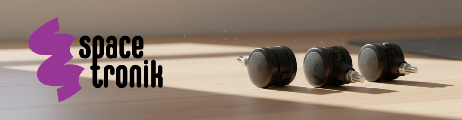 Kółka biurowe Spacetronik przekształcą Twoje dotychczasowe biurko elektryczne w mobilne. Jeśli często zmieniasz przestrzeń lub dużo się poruszasz, kółka ułatwią Ci łatwe przemieszczenie biurka. Dwa z czterech kółek posiadają hamulce, które zapewnią bezpieczeństwo przed niepożądanym przemieszczeniem się biurka i utrzymają je w jednym miejscu.