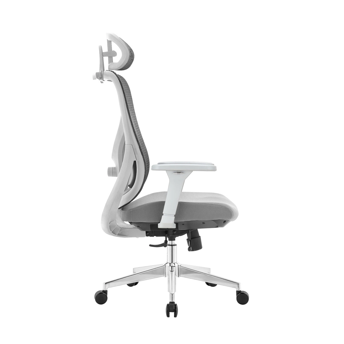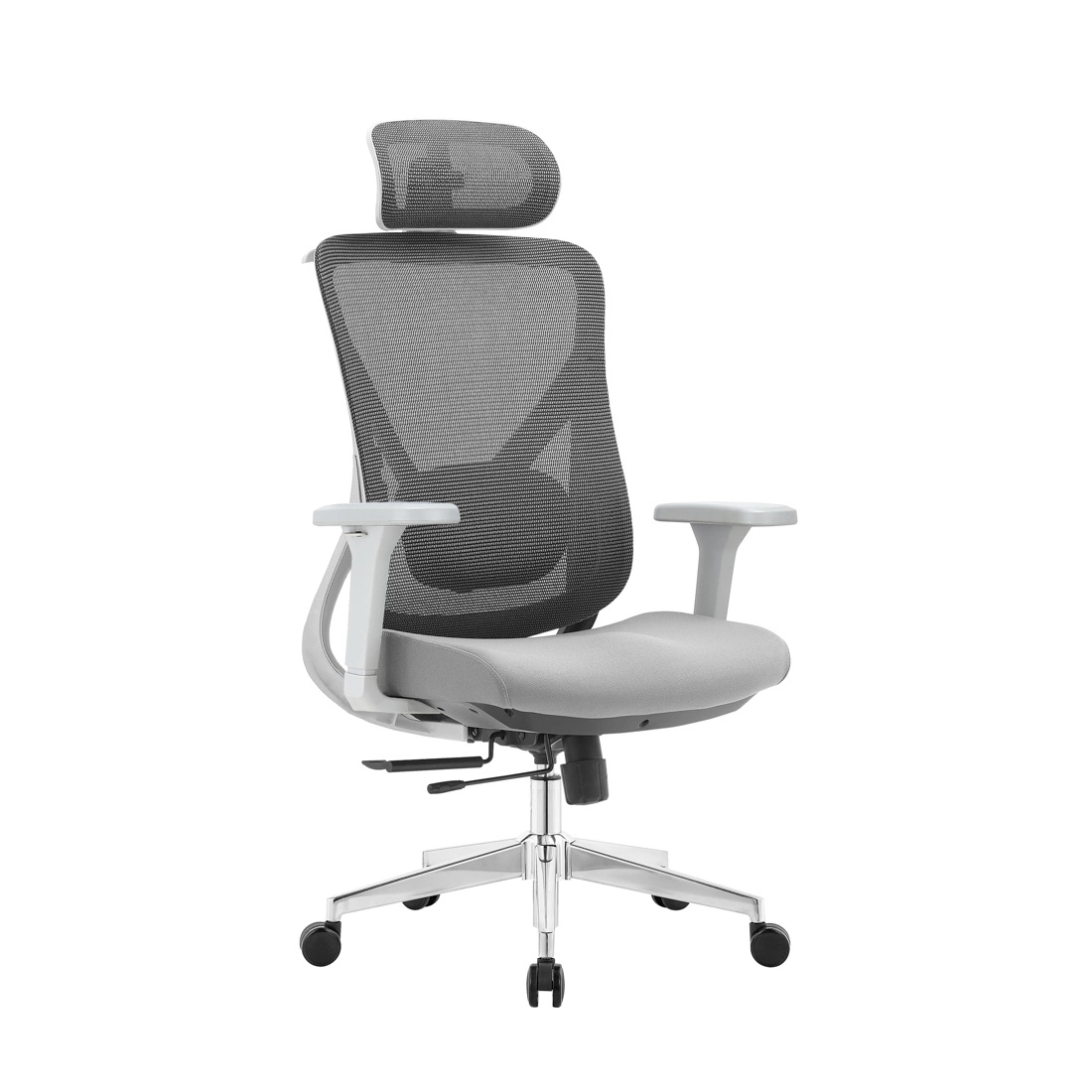 • Biurowe, ergonomiczne krzesło obrotowe. Regulowana wysokość 115 - 121 cm, podłokietnik 4D, zagłówek 2D i wsparcie lędźwiowe. Kolor szary.