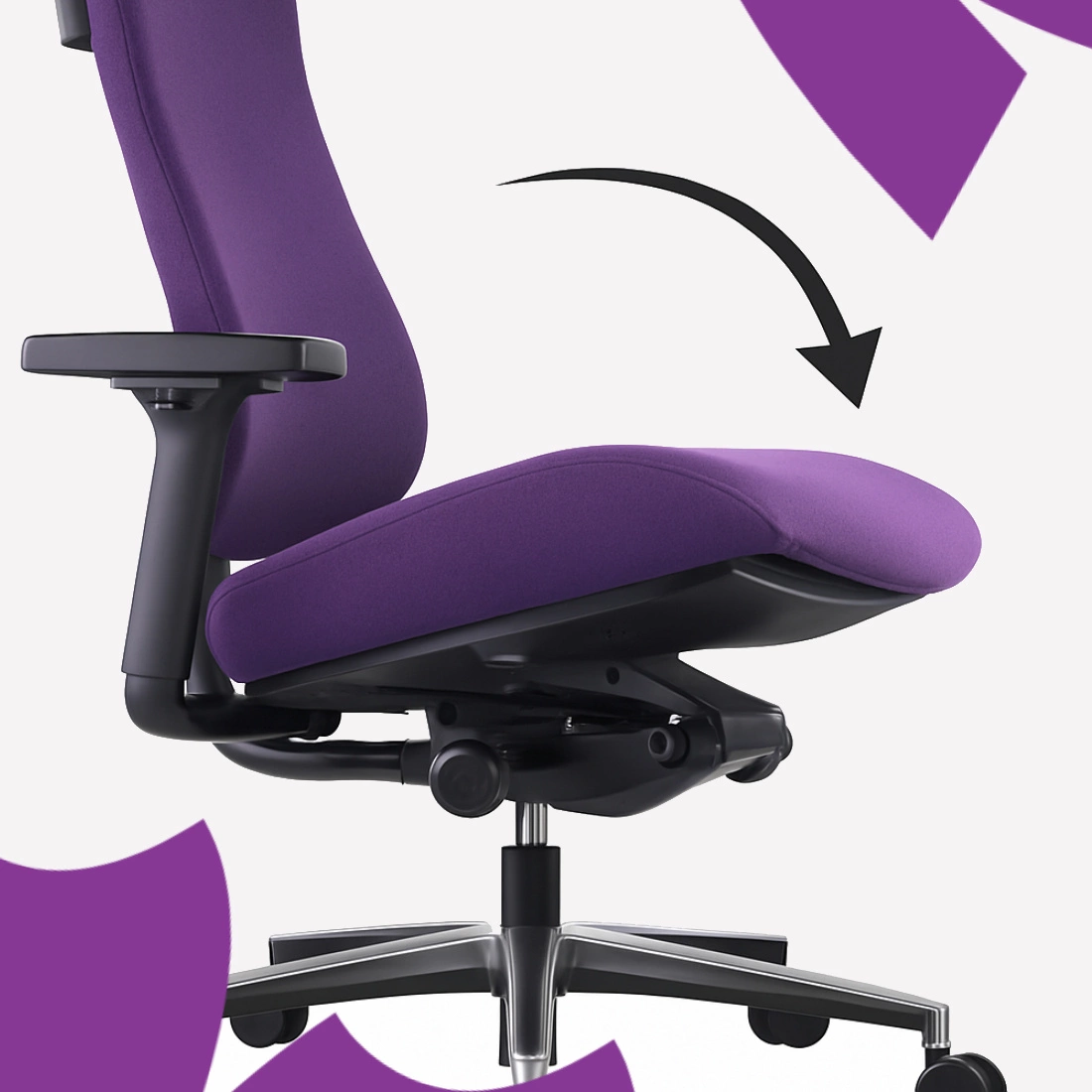 Siedzisko można podnieść lub opuścić za pomocą jednej z bocznych dźwigni, aby dostosować się do długości ud użytkownika można podnieść lub opóścić przednią część fotela przy wykorzystaniu jednego z pokręteł, co oznacza, że jeden fotel pasuje do różnych sylwetek. Siłownik klasy 4 zapewnia płynne i niezawodne działanie. Siedzisko fotela posiada również możliwość wychylenia się do tyłu, czego zakres także można regulować przy wykorzystaniu pokręteł. Zaokrąglona przednia krawędź zmniejsza ucisk na uda. Gruba warstwa pianki PU zapewnia wygodę i trwałość.