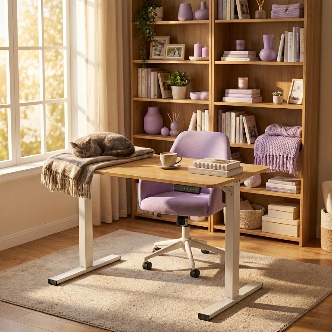 Stelaż biurka wykonano ze stali, co zapewnia stabilność w całym zakresie wysokości i udźwig do 50 kg. Możesz swobodnie oprzeć się o blat, ustawić większy monitor czy dodatkowy sprzęt, mając pewność, że biurko pozostanie stabilne zarówno w najniższej, jak i najwyższej pozycji.