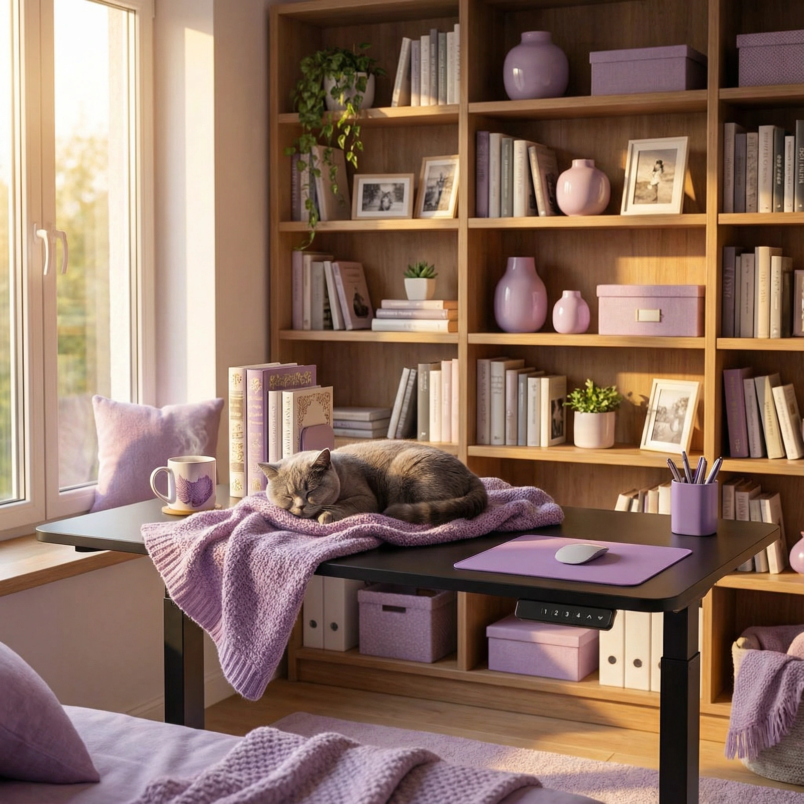 Zakres regulacji 75–110 cm pozwala kilkukrotnie w ciągu dnia zmienić pozycję pracy. Dzięki temu odciążasz kręgosłup, wspierasz krążenie i redukujesz uczucie zmęczenia. Cichy silnik sprawia, że podnoszenie lub opuszczanie blatu jest niemal niesłyszalne – możesz robić to nawet w trakcie spotkań online, bez zakłócania rozmowy.