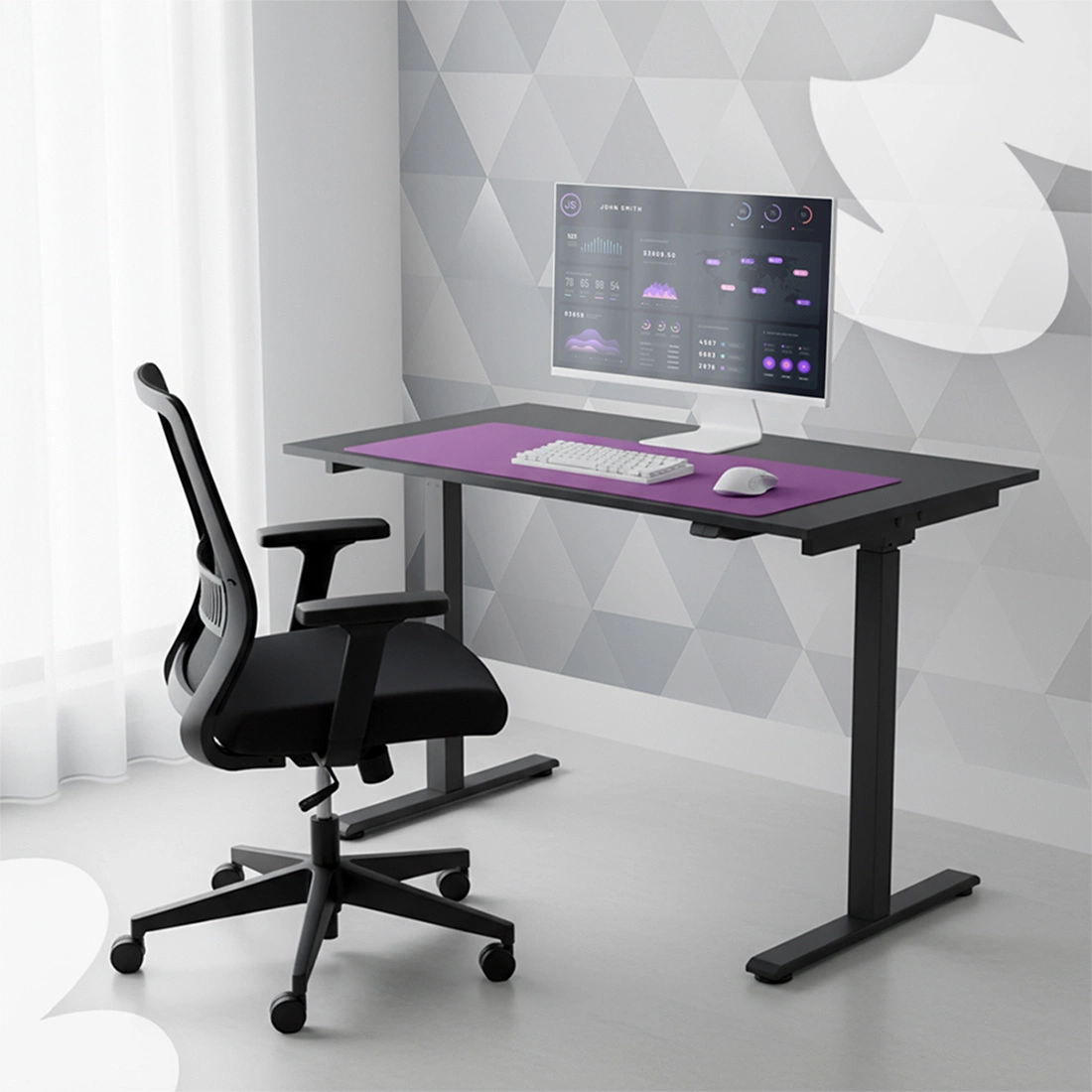 Płynna regulacja wysokości sprawia, że biurko łatwo dostosujesz do swojego wzrostu, a także udostępnisz je