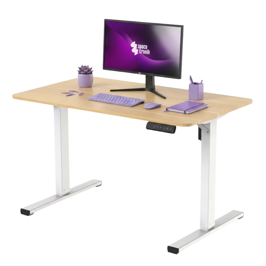 Biurko elektryczne SPEO125WO 120x60 cm – drewniany blat i biały stelaż w stylu skandynawskim