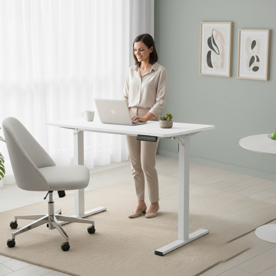 Biurko elektryczne SPEO125WW z blatem 120 × 60 cm zostało stworzone z myślą o osobach, które chcą dopasować stanowisko pracy do własnego rytmu dnia. Dzięki płynnej regulacji wysokości w zakresie 75–110 cm możesz w każdej chwili zmienić pozycję z siedzącej na stojącą, wspierając swoje samopoczucie i koncentrację. Minimalistyczny, biały design sprawia, że biurko staje się estetycznym centrum nowoczesnego domowego biura.
