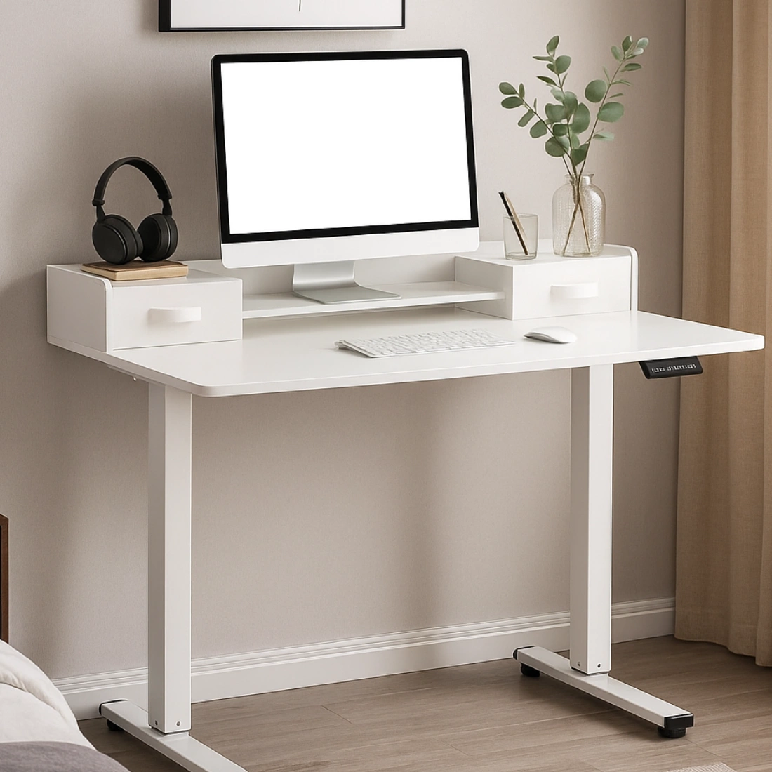 Masz dość bólu pleców i chaosu na biurku po całym dniu pracy zdalnej? ErgoHub 120 łączy płynną regulację wysokości z wbudowaną szufladą i portami USB, tworząc przestrzeń, która dopasowuje się do Twoich potrzeb. To inteligentne rozwiązanie do domowego biura lub nauki — dla osób ceniących ergonomię, estetykę i wydajność.