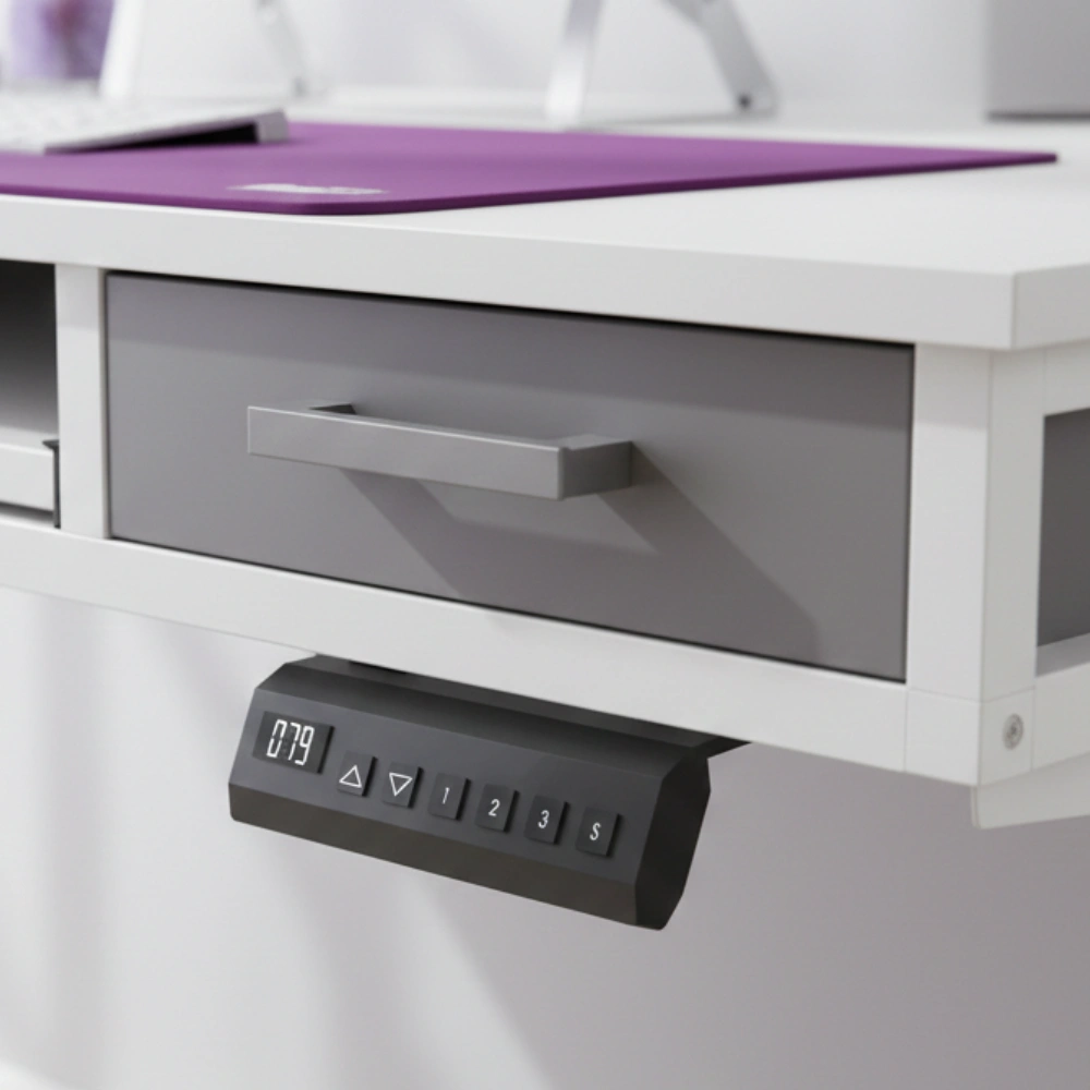 SPEF122WW_120_60 to funkcjonalne biurko stojące, które ułatwia pracę w trybie siedząco-stojącym. Regulacja wysokości w zakresie 81–126 cm pozwala dopasować ustawienie do wzrostu i preferencji, a duży blat 120 × 60 cm zapewnia wygodną przestrzeń na monitor, laptop i akcesoria. Dodatkowo zyskujesz szufladę podblatową z systemem soft-close oraz wysuwaną półkę na klawiaturę, dzięki czemu łatwiej utrzymać porządek i ergonomię.