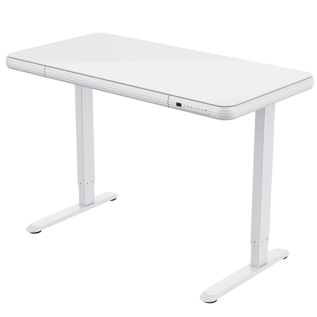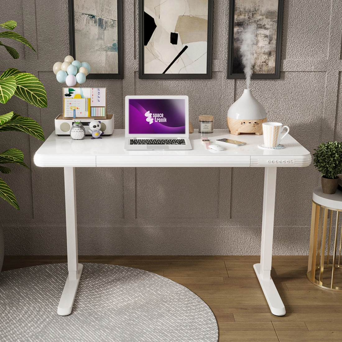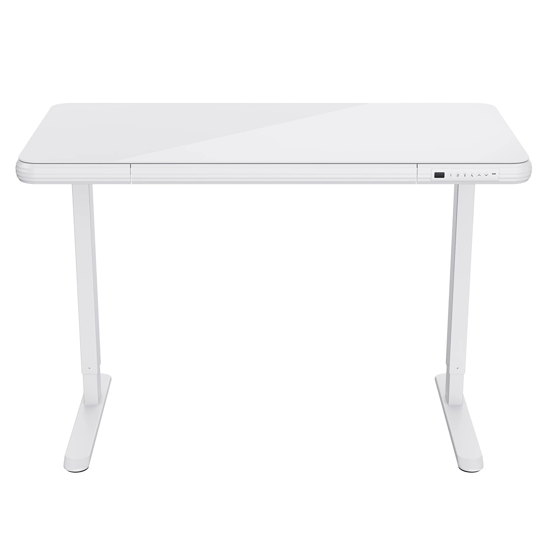 Białe biurko elektryczne z regulacją wysokości i szklanym blatem Spacetronik Astrid SPEB125WG