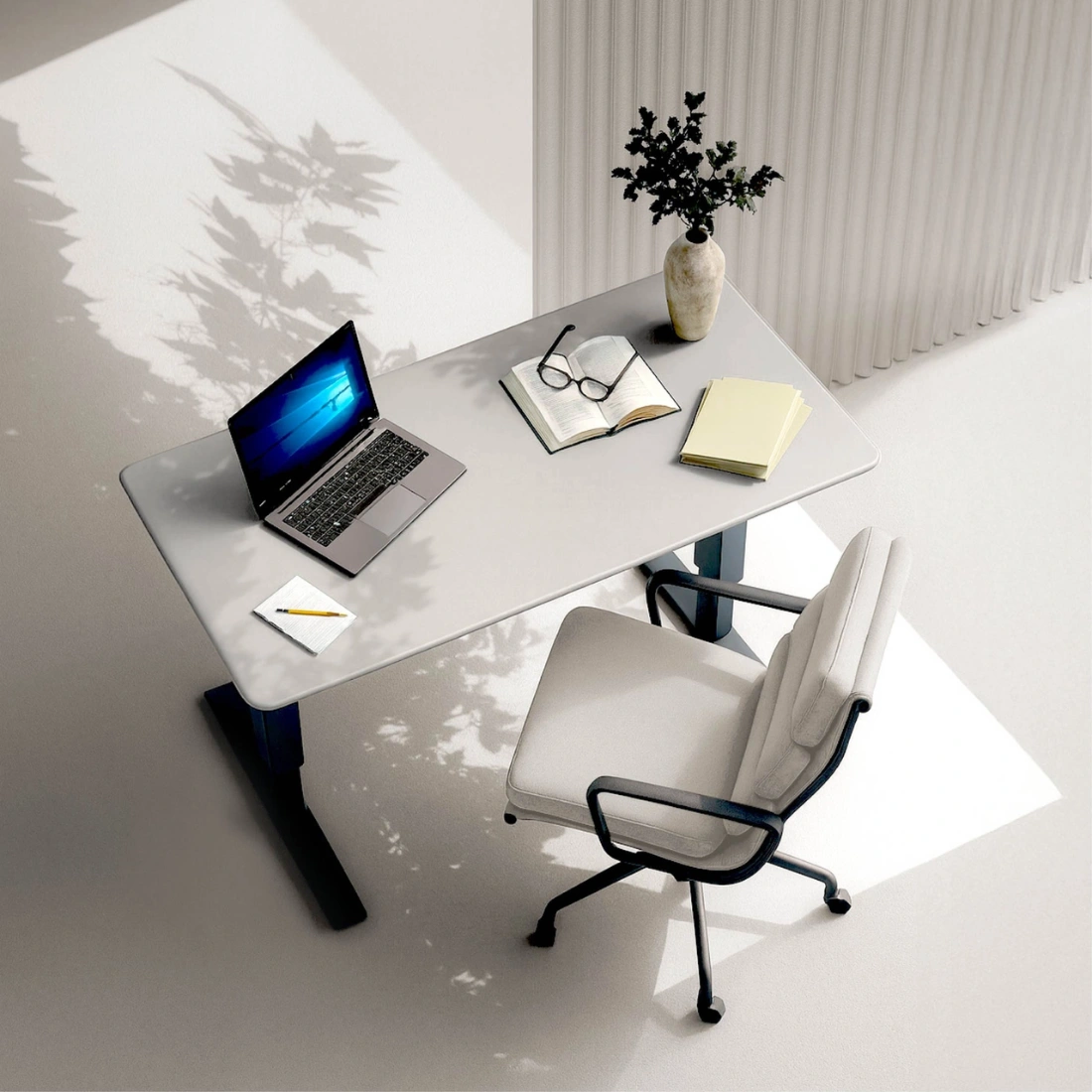 Elektryczna regulacja wysokości pozwala w kilka chwil przejść z pozycji siedzącej do stojącej. Taka zmiana w ciągu dnia może wspierać krążenie, ułatwiać utrzymanie prawidłowej postawy i odciążać kręgosłup. To prosta droga do wygodniejszej pracy, większego skupienia i lepszego samopoczucia — szczególnie wtedy, gdy spędzasz przy biurku wiele godzin. Dzięki pamięci ustawień szybko wrócisz do ulubionych wysokości jednym kliknięciem.