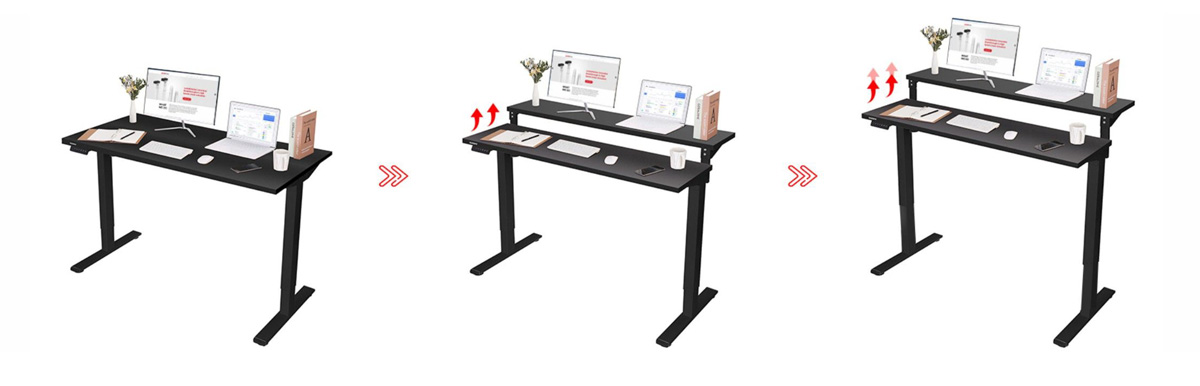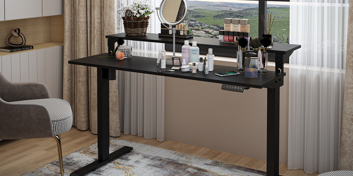 Elektryczne biurko SPE-O133BB Moris 140x40 cm + 140x30 cm (czarny stelaż + blat czarny)