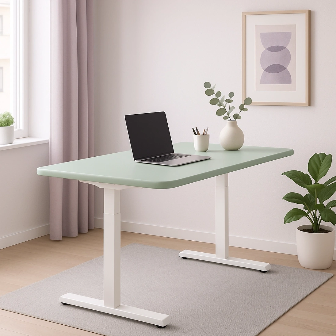 Elektryczne biurko regulowane Vegard – stelaż 2 silniki + blat MDF premium zielony