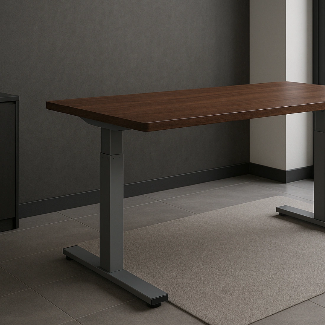 Sercem stelaża jest mocny, a jednocześnie zaskakująco cichy silnik. Z prędkością regulacji 23 mm/s płynnie przejdziesz z najniższego do najwyższego punktu w kilkanaście sekund. Cały proces odbywa się przy głośności poniżej 50 dB — to ciszej niż spokojna rozmowa, więc wysokość zmienisz w dowolnym momencie bez rozpraszania domowników czy współpracowników.