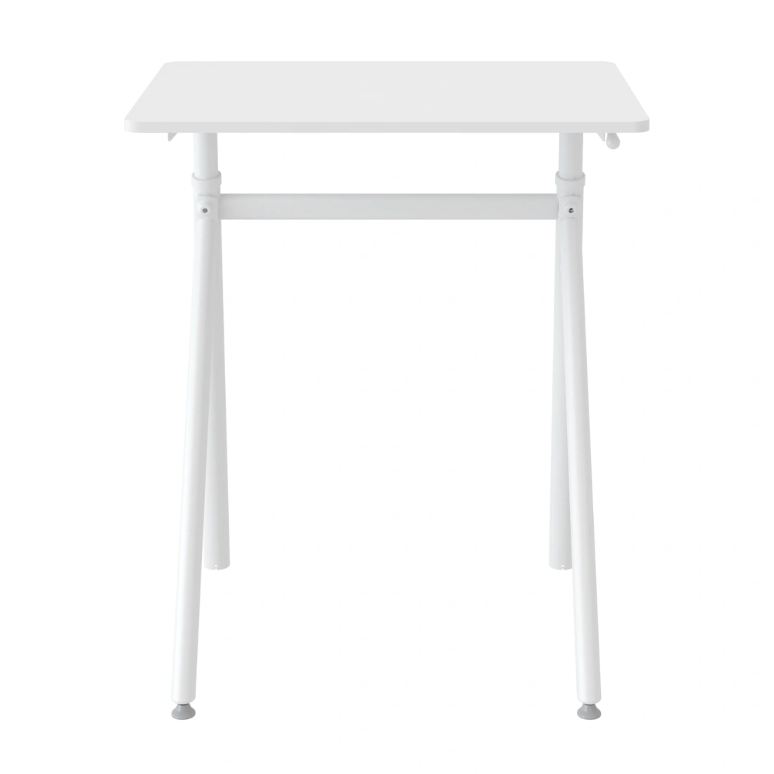 • Białe biurko stojące z płynną regulacją gazową w zakresie 71,6–105,2 cm obsługiwaną dźwignią pod blatem. Kompaktowy blat 70 × 50 cm oraz stabilna konstrukcja ze stali i PP z blatem z płyty wiórowej sprawdzą się do pracy i nauki.