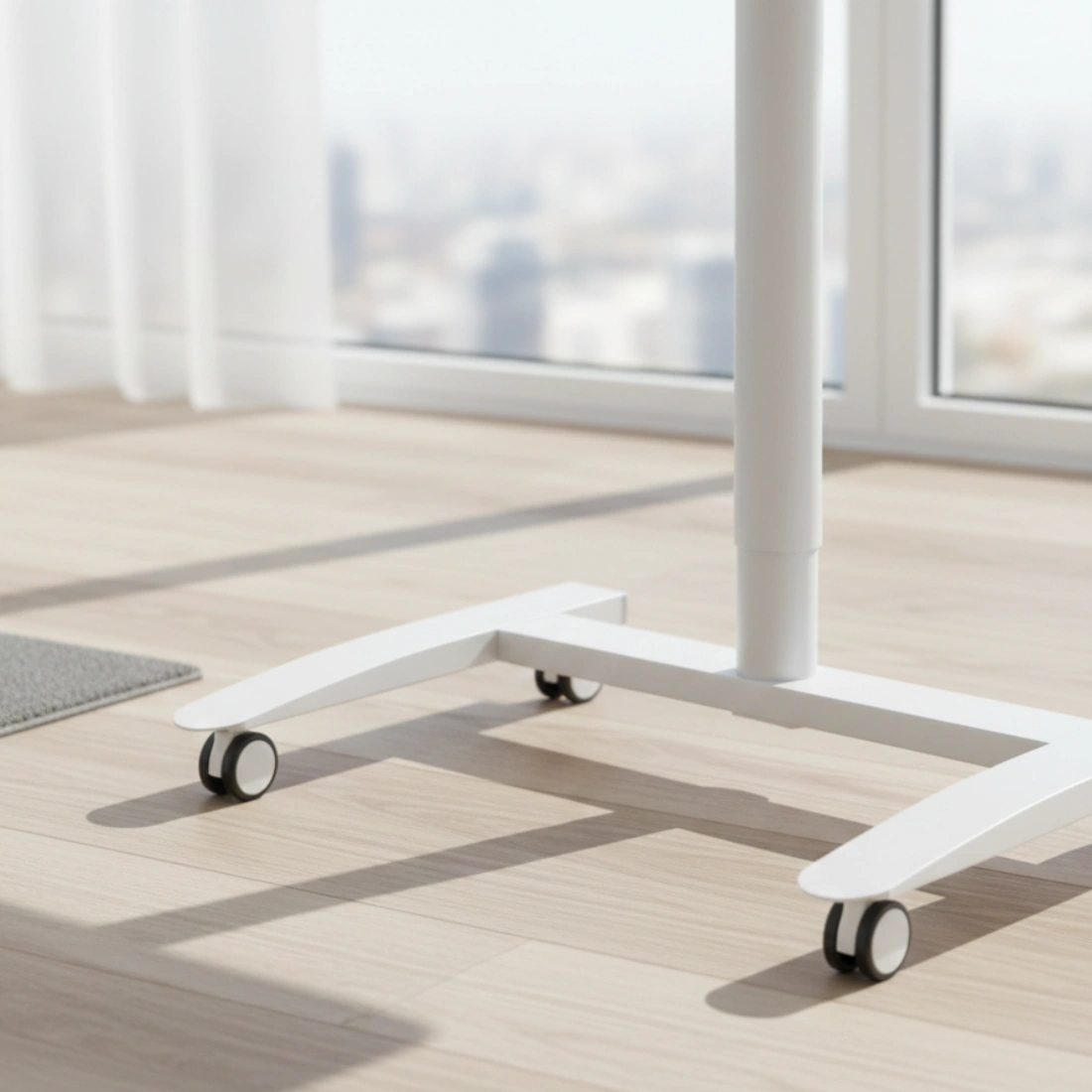 Mechanizm gazowy działa podobnie jak w regulowanym fotelu: zmiana wysokości jest płynna, bez skoków i bez stopni. W praktyce wystarczy użyć dźwigni sterującej, aby dopasować stanowisko do preferowanej pozycji pracy na siedząco lub na stojąco.