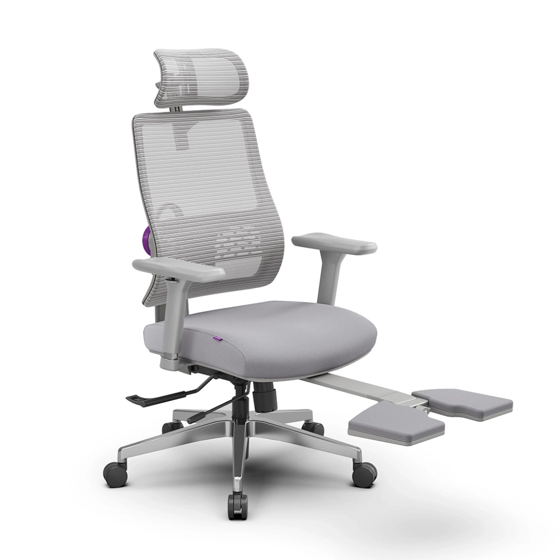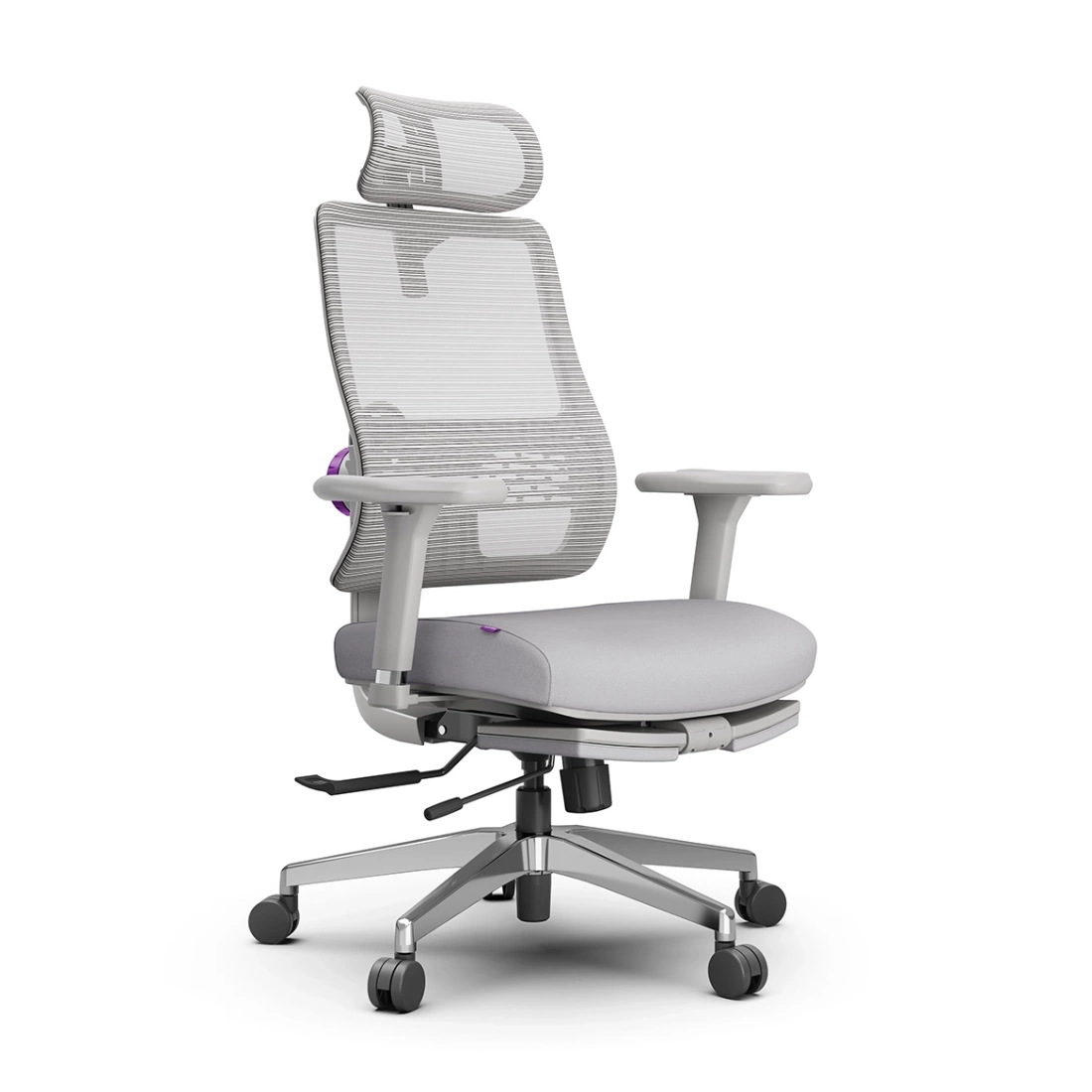 Automatyczne podparcie lędźwi, zagłówek 5D i podłokietniki 4D pomagają utrzymać neutralną pozycję ciała. Siatka MESH poprawia wentylację przez cały dzień.