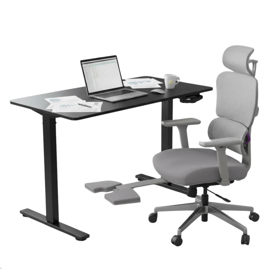 Kompletny duet do zdrowej pracy: manualne biurko z regulacją 72–109,5 cm i dużym blatem 120×60 cm oraz krzesło z automatycznym wsparciem lędźwi, podłokietnikami 4D, zagłówkiem 2D i wysuwanym podnóżkiem. Zestaw łączy stabilność, przewiewne materiały i pełne dopasowanie pod użytkownika.
