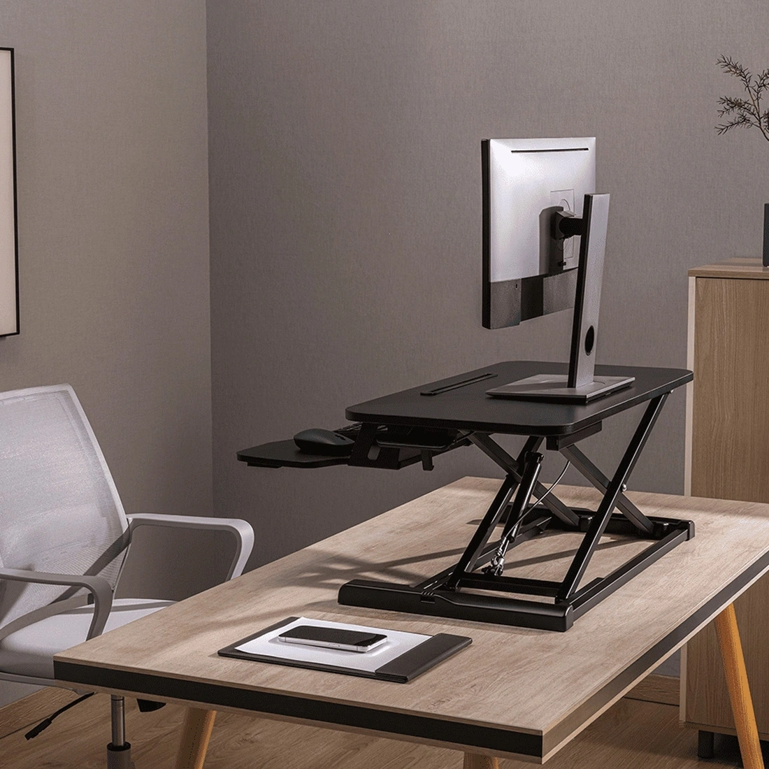 W aktualnych czasach wszyscy jesteśmy skazani na spędzanie wielu godzin w pozycji siedzącej. W pracy przed komputerem, w domu przy nauce, czy też podczas relaksu przed komputerem. Niezależnie od tego, jak spędzamy swój czas, powinniśmy dbać o to, by przestrzegać zasad ergonomii. Wszystko po to, by zatroszczyć się o swoje zdrowie. Dlatego też, przy pracy przy biurku powinniśmy zmieniać pozycję ciała z siedzącej na stojącą. Taką możliwość da Ci podstawka na biurko z regulacją wysokości Spacetronik SPR-123MB. Dzięki niej dopasujesz wysokość swojego stanowiska pracy. Będziesz mógł w łatwy sposób pracować zarówno na siedząco, jak i stojąco.