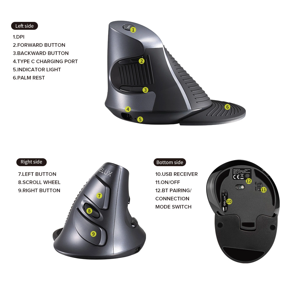 Ergonomiczna pionowa mysz bezprzewodowa Delux M618G DB